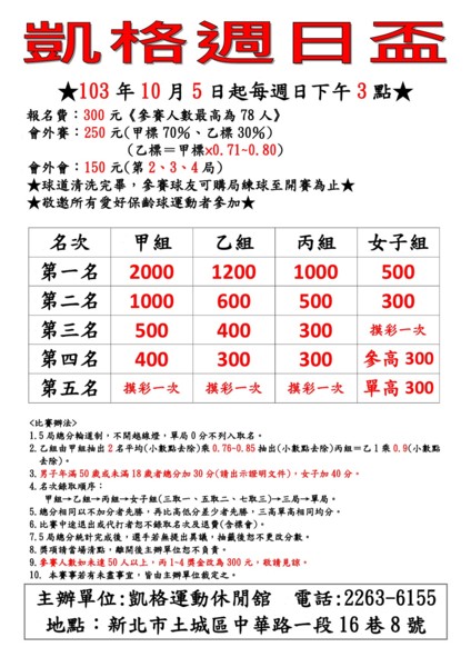 凱格週六/周日盃簡章~供球友參考!歡迎報名參賽!!