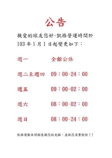 凱格過年營業時間與牌價~歡迎您的光臨!!