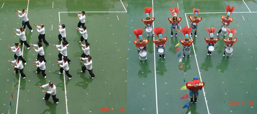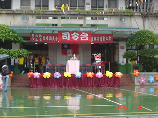 學校每年的運動會除了學生的活動以外,還結合了社區活動,在濛濛細雨中,年長的阿公阿嬤們表演了一段氣功,還有熱情洋溢的森巴鼓樂隊表演精采。。。