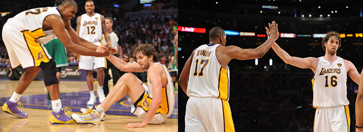 Kobe被嚴加看管,讓Pau Gasol及Ander Bynum在籃下大殺四方(46分14籃板13火鍋),但是其他隊友使不上力,還在關鍵時刻失誤連連、浪擲亂投、自亂陣腳,將1分落後擴大到8分落後,只能無語問蒼天,收拾落寞的行囊,啟程去波士頓。