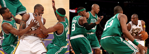 塞爾提克今天針對Kobe還是不停的夾擊、夾擊、再夾擊,使得Kobe今天只得21分,將Kobe的破壞力降到最低,Tony Allen的防守纏鬥力確實不錯,如果得分更有破壞性,將會是塞爾提克板凳上另一位可怕的人物!