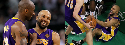 湖人能贏球,禁區雙塔還是有很大的貢獻,尤其在籃板球,Pau Gasol及Ander Bynum合力搶下20個籃板球,再加上替補Lamar Ordom的5籃板12分,仍然讓Celtics在禁區一愁莫展!