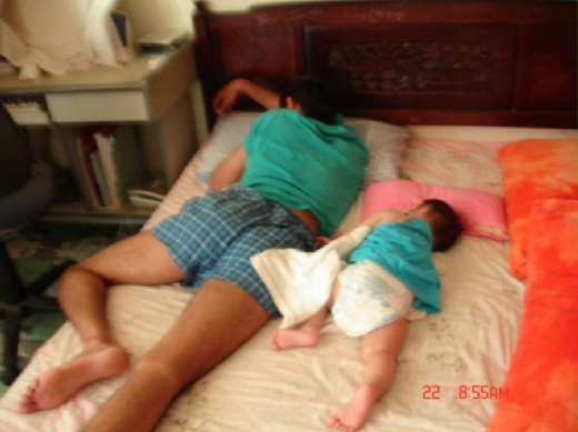 楷寶貝出生至4個月時,大部分的人說楷寶貝和老公比較像,濃濃的雙眉,捲翹的長睫毛,連睡姿也很像噢!