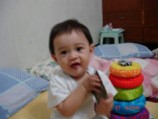 已經長6顆牙的楷寶貝,流口水的現象比剛長牙時改善許多,剛長牙時咬固齒器和嬰兒布書,現在專咬些奇奇怪怪不該咬的;如:行動電話、厚紙童書、尿布、學歩鞋,還會趴在地上舔地板!![]()