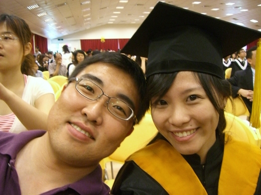穿上碩士服的感覺還真不賴,不知道有沒有機會在三十五歲以前跟臭寶貝一起去國外拿個PHD回來呢..... :PP