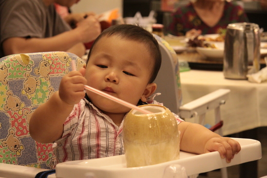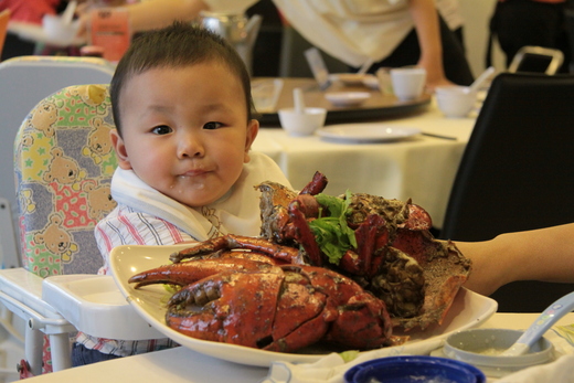 上星期家裡的老大嘴蟬要吃螃蠏, 所以全家+傭人一起去東海岸的海鮮中心. 點了辣椒跟胡椒, 一次吃個痛快. 早一點出門讓翰翰可以看到海也可以去旁邊的公園走走照照相. 三個小時裡, 他都很配合, 我們吃crab他吃粥.