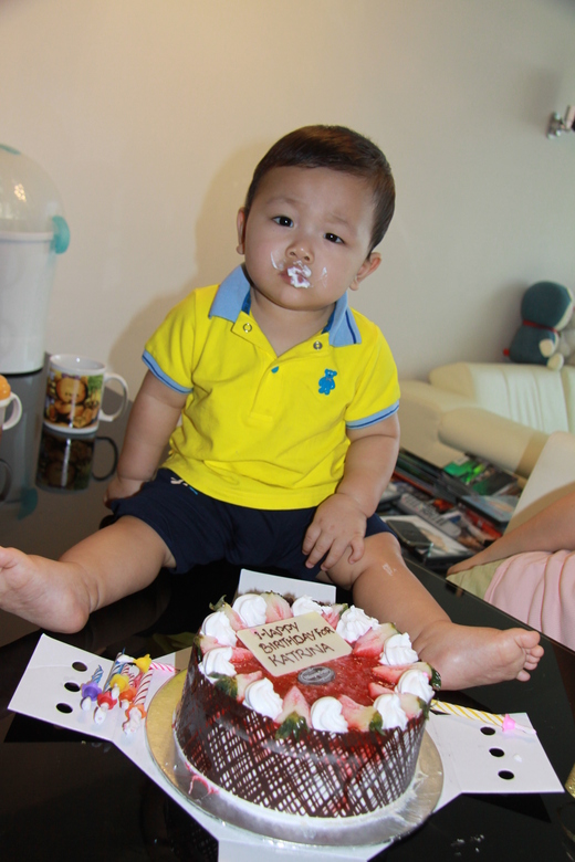第一次吃哈一根冰淇淋蛋糕, 媽咪只給我吃一小口牛奶泡