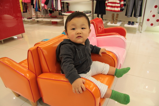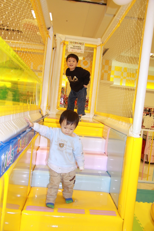 媽咪跟小阿姨為了買我們的東西把我們放在百貨公司的遊樂場裡, 由爸爸看顧我們三個小孩. 一個小孩200塊. 二個小表哥買的不亦樂乎, 媽咪也幫小堂弟買了新的學步車當見面禮.