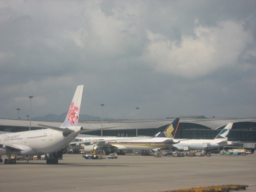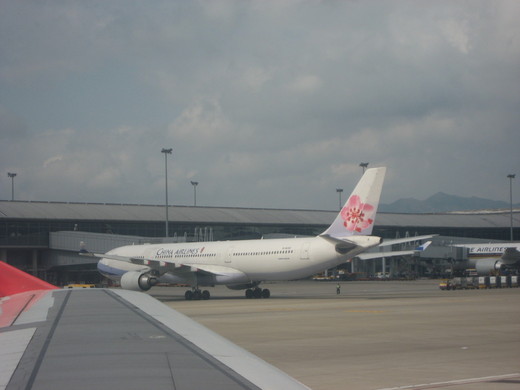 香港機場可以免費打香港本地電話,所以之前都會帶朋友的電話來打發時間,這次,則有免費網路供我和朋友、應該說是家人們聊天。飛機起飛時,就在瞌睡蟲不住的招喚下昏睡,但卻在有意識的時候悄悄留下了對機場的紀錄,香港灰濛濛的天空,不穩的氣流,和離開高雄時艷陽蔚藍的天空形成了強烈的對比。前兩天還因為香港大霧而不小心造成了直航廣州的紀錄呢!這樣的直航,應該能省下不少時間與旅費吧,至少,上海不再遙遠。