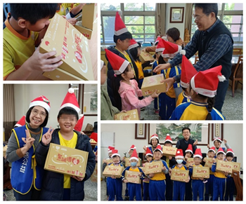 校長們也藉由發送禮物的溫馨氛圍,向小朋友傳達叔叔阿姨們的關心與祝福,也勉勵小朋友們長大之後也要盡己之力回饋社會,並將學校平時倡導的「三好」概念:存好心、說好話、做好事,應用在生活之中。再次聽到校長的諄諄教悔,實在令遠離國小校園許久的我們感謝溫暖與懷念。看到小朋友們拿到禮物的開心笑容真是令人滿足,更有許多孩子迫不及待地的打開包裝盒,想來是很喜歡這份聖誕禮物喔!