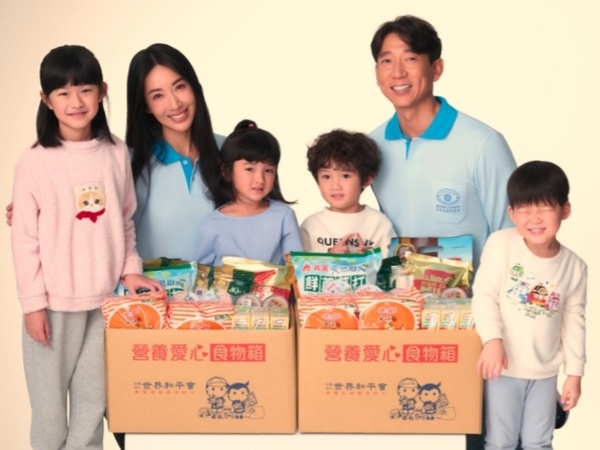 世界和平會愛心大使隋棠與Tony邀請民眾為孩子準備營養充足的食物箱。圖/世界和平會提供
