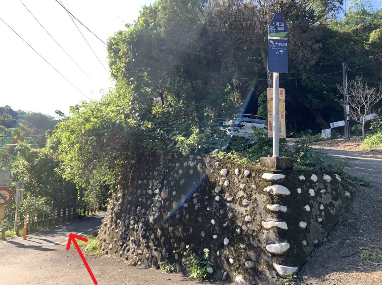 ↓往「大平紅橋」的入口,就在停車場的對面,到「大平紅橋」1875公尺。請注意,是「大平紅橋」,不是「太平紅橋」,凱文第一次看到這個地名時也曾弄錯了。