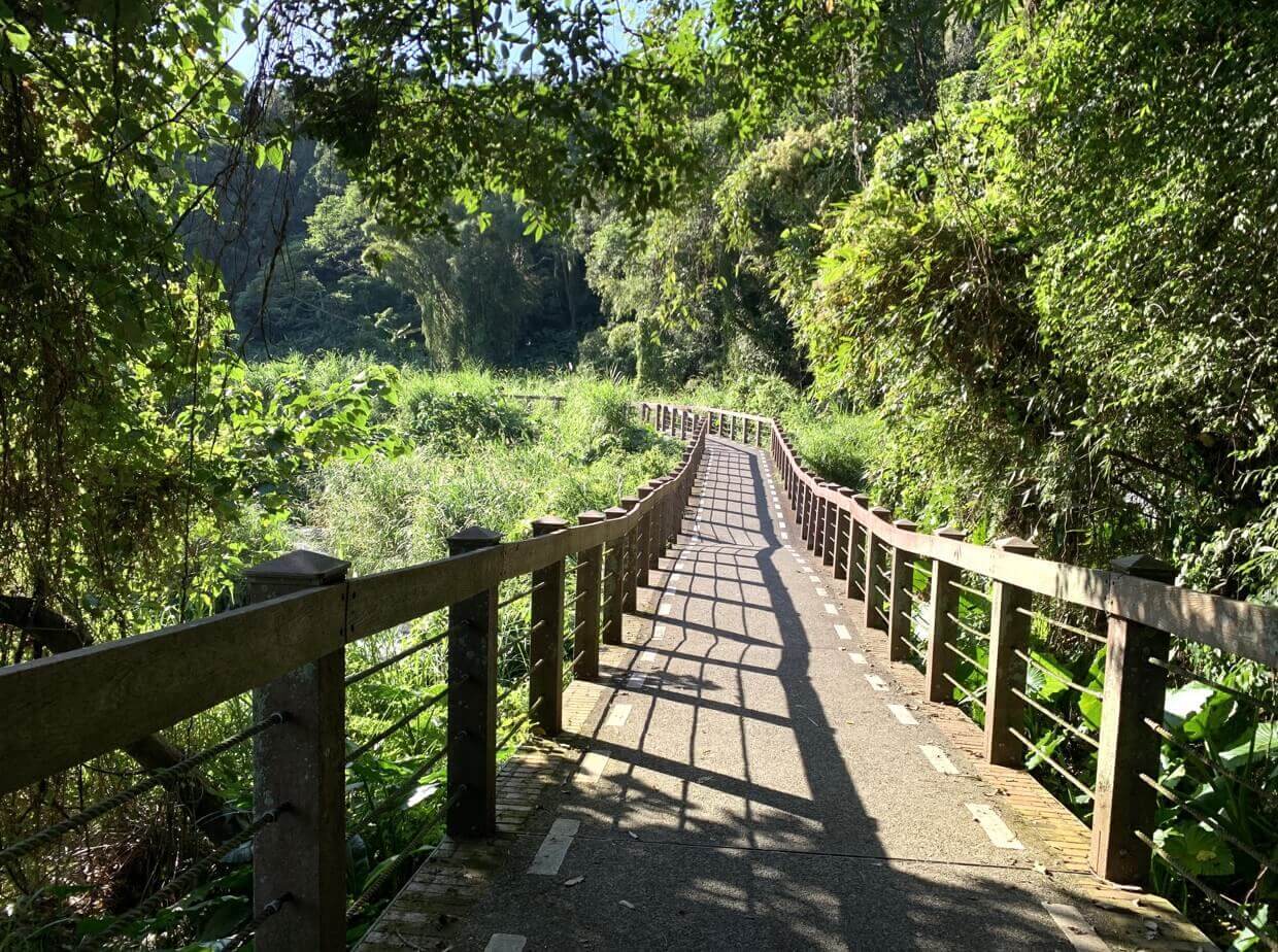 ↓「打鐵坑溪步道」走起來一路平坦,偶有小起伏,樹蔭不少,這個季節來走非常舒服。