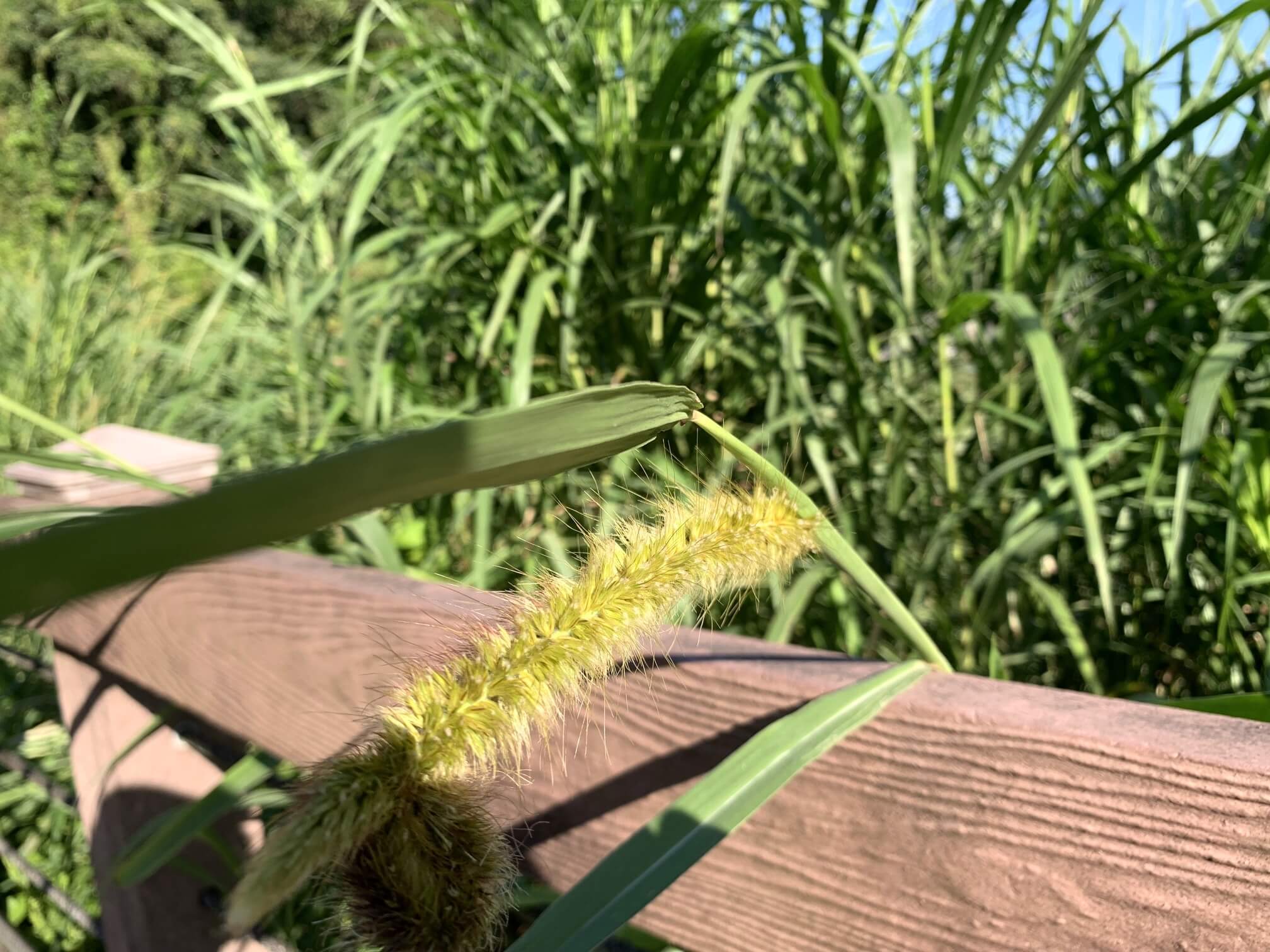 ↓沿路植物的物種豐富,這是大象很喜歡吃而得名的「象草」,這個季節來,剛好可以看到它開出黃色的花。