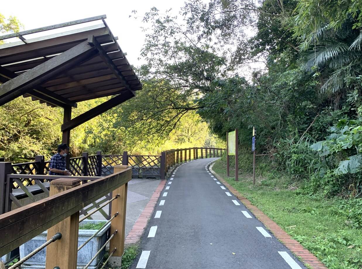 ↓前面這一段步道,很像曾經出現在周杰倫《不能說的秘密》電影中的「麟山鼻步道」。電影中周杰倫放學後騎車載著桂綸鎂,走了一段很像眼前這段路一樣的起伏及彎曲。可惜我們今天步行而非騎車,不然凱文也可以載老婆一起揣摩劇中葉湘倫載著路小雨的浪漫純真。