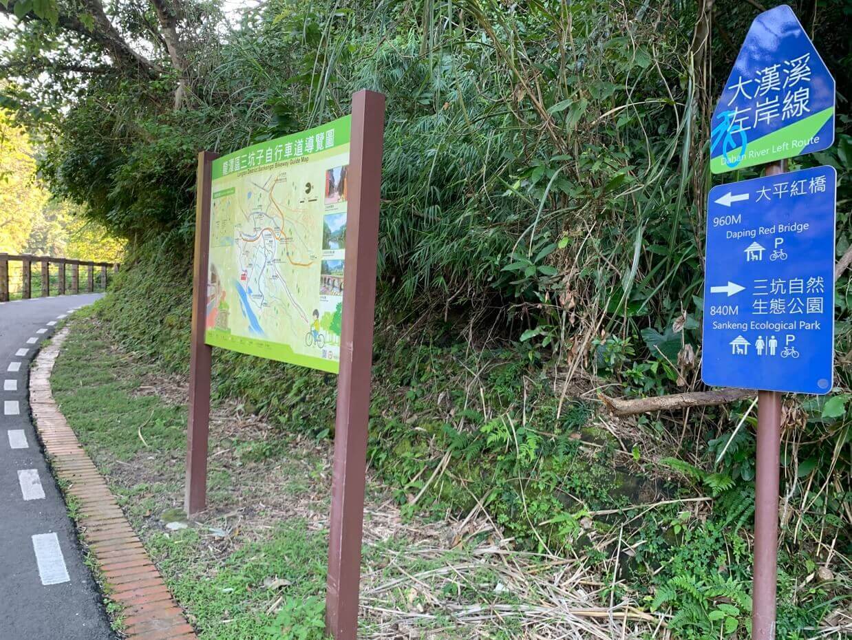 ↓停車場旁邊有Ubike租借站,可以騎Ubike,沿著三坑自行車道逛「三坑自然生態公園」附近的幾個景點,可遠至鶯歌、大溪、石門水庫的石管局大草坪。