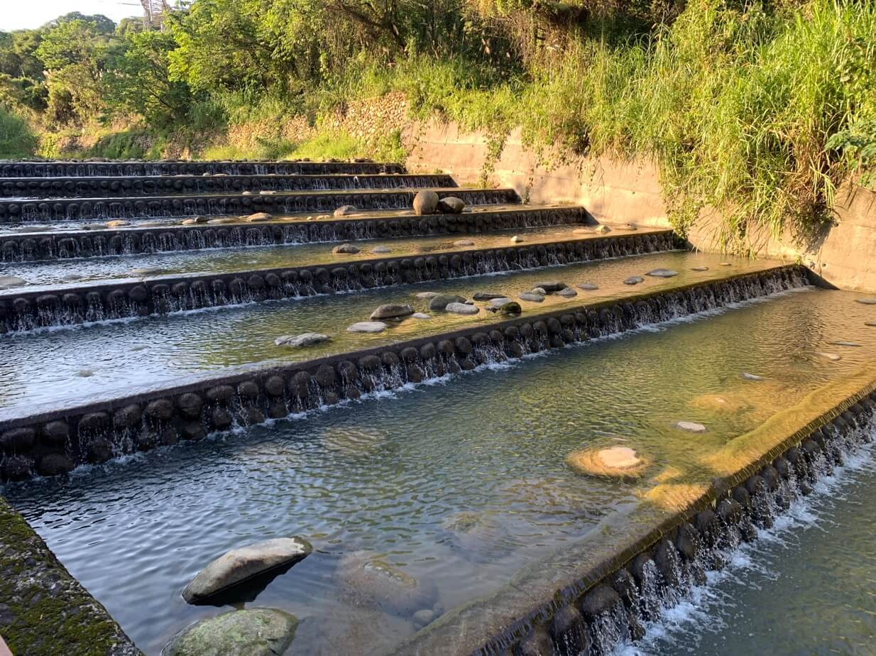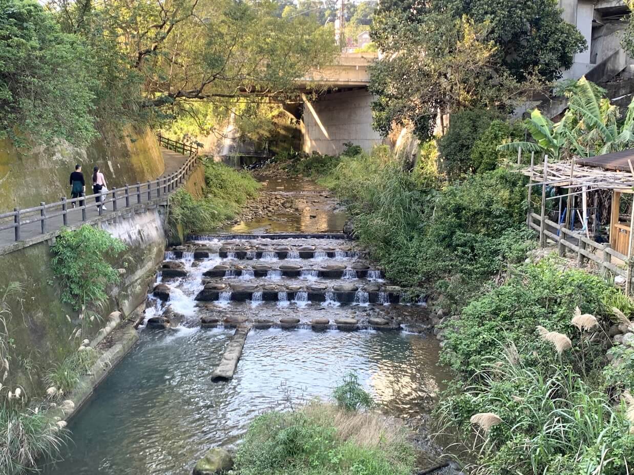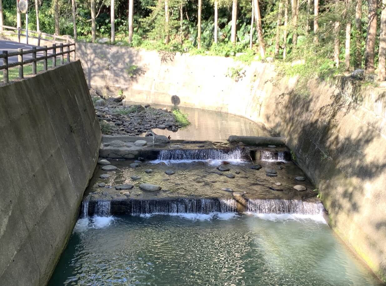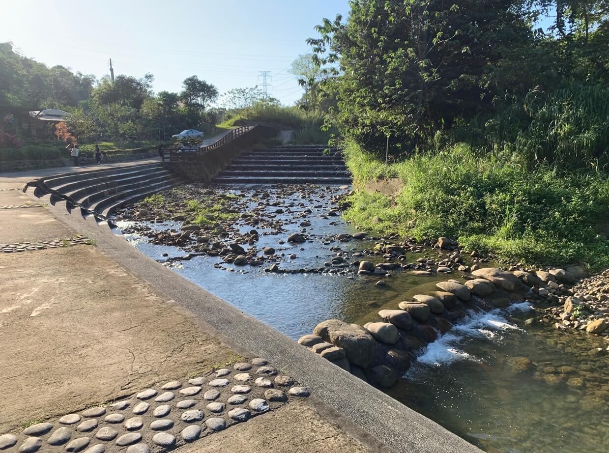 ↓這裡有親水階梯、卵石護岸,常有遊客坐在階梯上欣賞溪景。這附近也自然形成一處親水公園,溪水未受太多的汙染,清澈可以戲水。