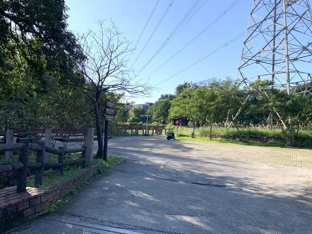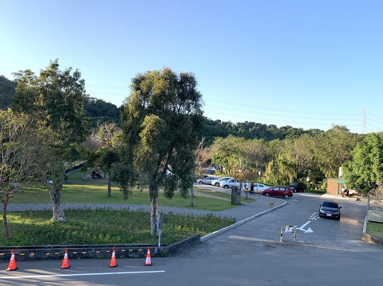 ↓我們開車從「三坑老街」過來,停車在「三坑自然生態公園」的第二停車場,停車場旁邊就有廁所。這裡的車位不多,如果假日來,可能就要停到車位較多的第一停車場,再走約500公尺到這裡。