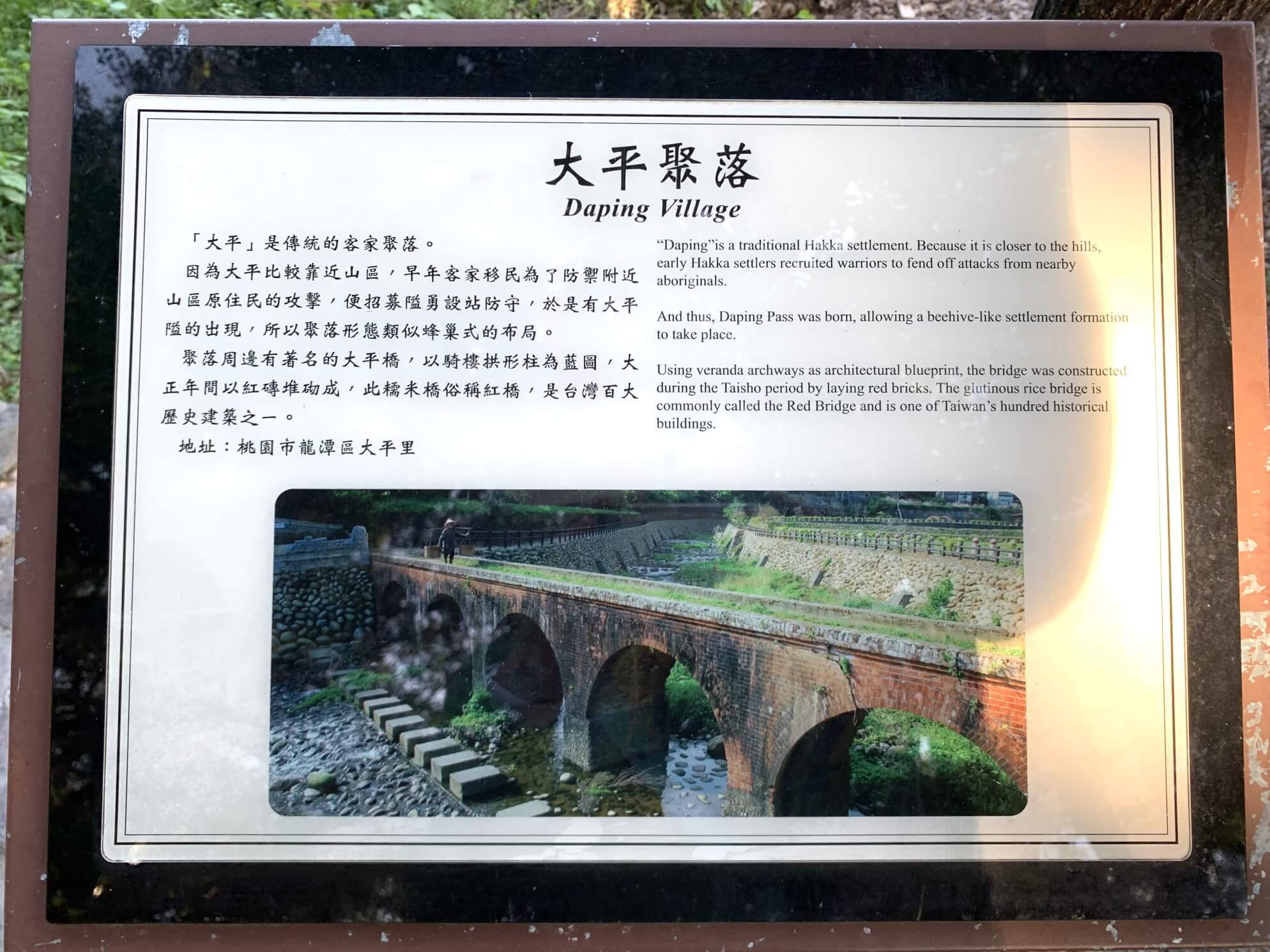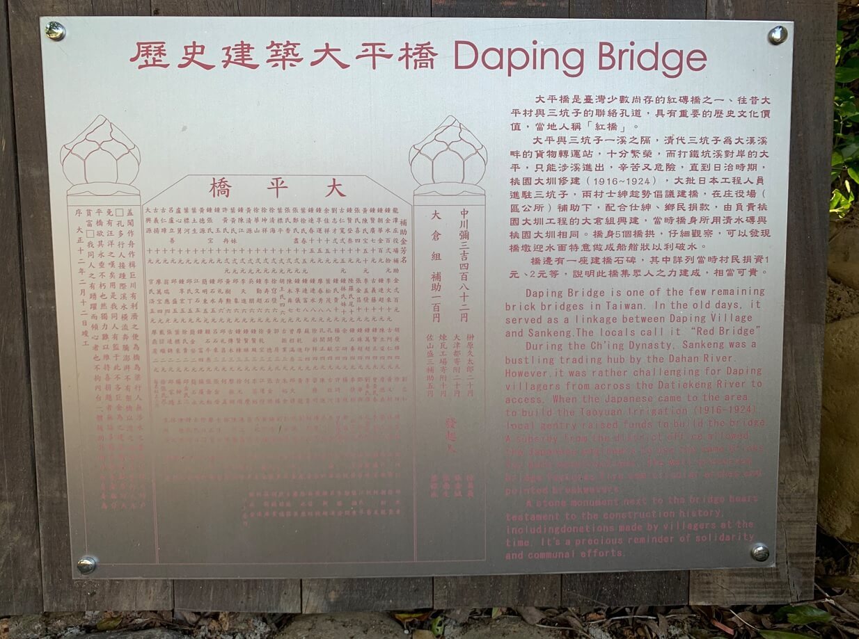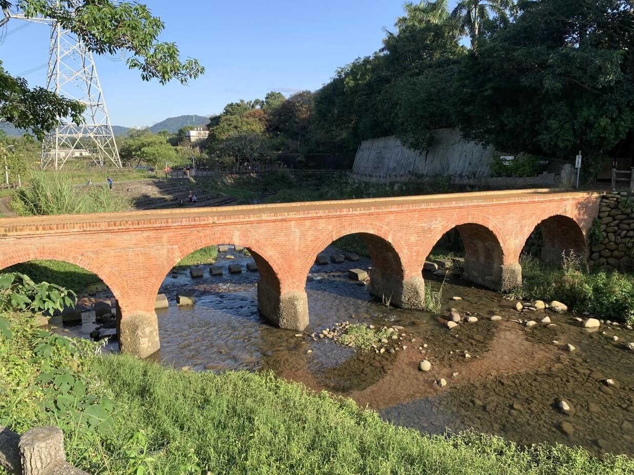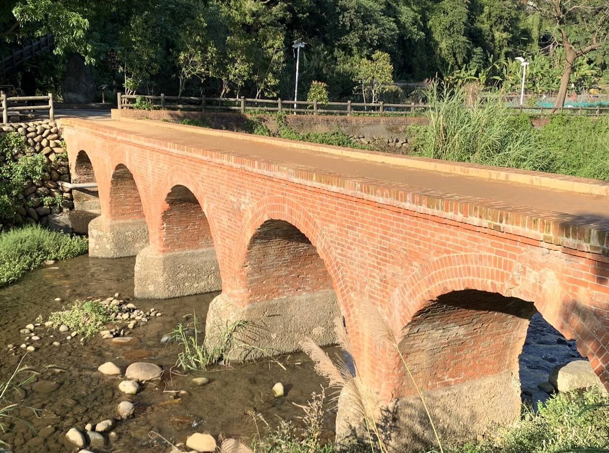 ↓「大平紅橋」建於西元1923年,曾於2001年獲選為【台灣歷史建築百景】第65名,因全橋以紅磚構造,故名「紅橋」,官方則稱「大平橋」。