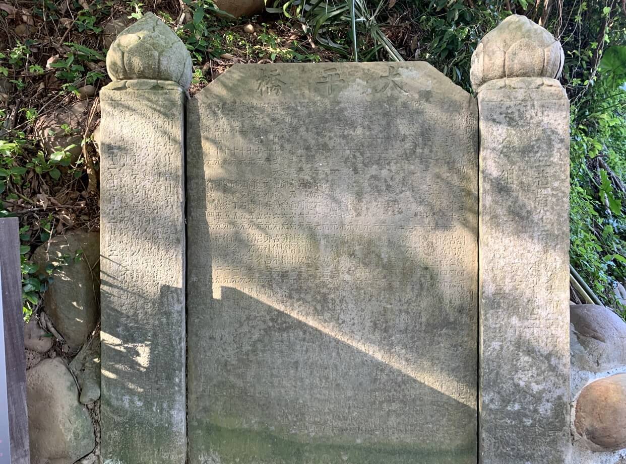 ↓橋邊有一座建橋紀念石碑,詳列當時村民捐資1元、2元等協助建橋,說明此橋集眾人之力建成,相當可貴。