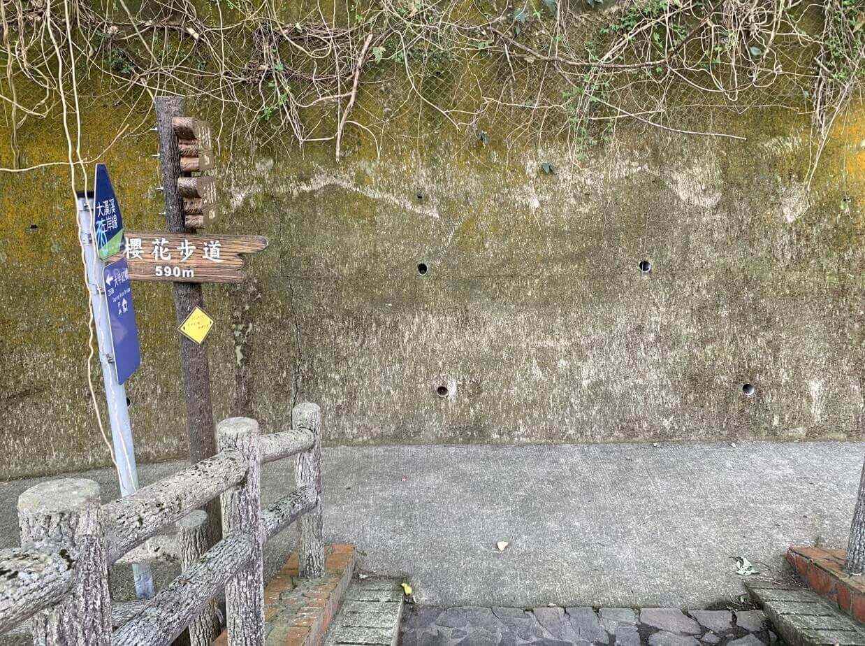 ↓過了橋,往「櫻花步道」還有590公尺,而「千層瀑布」就在「櫻花步道」入口處前。