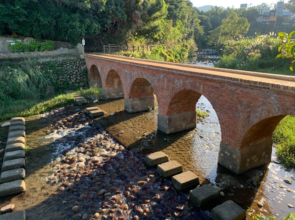 ↓過了橋,順光的角度下,可以清楚地欣賞這屹立百年的紅橋,紅磚拱門飄逸復古風味。