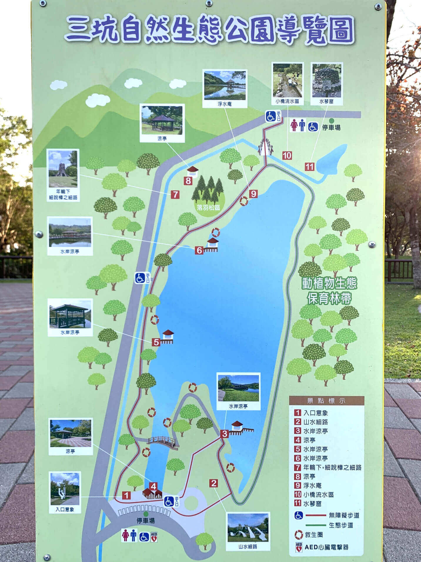 ↓「三坑自然生態公園」最大的特色,就是園區內有一座形狀像【義大利】國土的高跟鞋生態池,園區內還有6座涼亭及完善的步道。