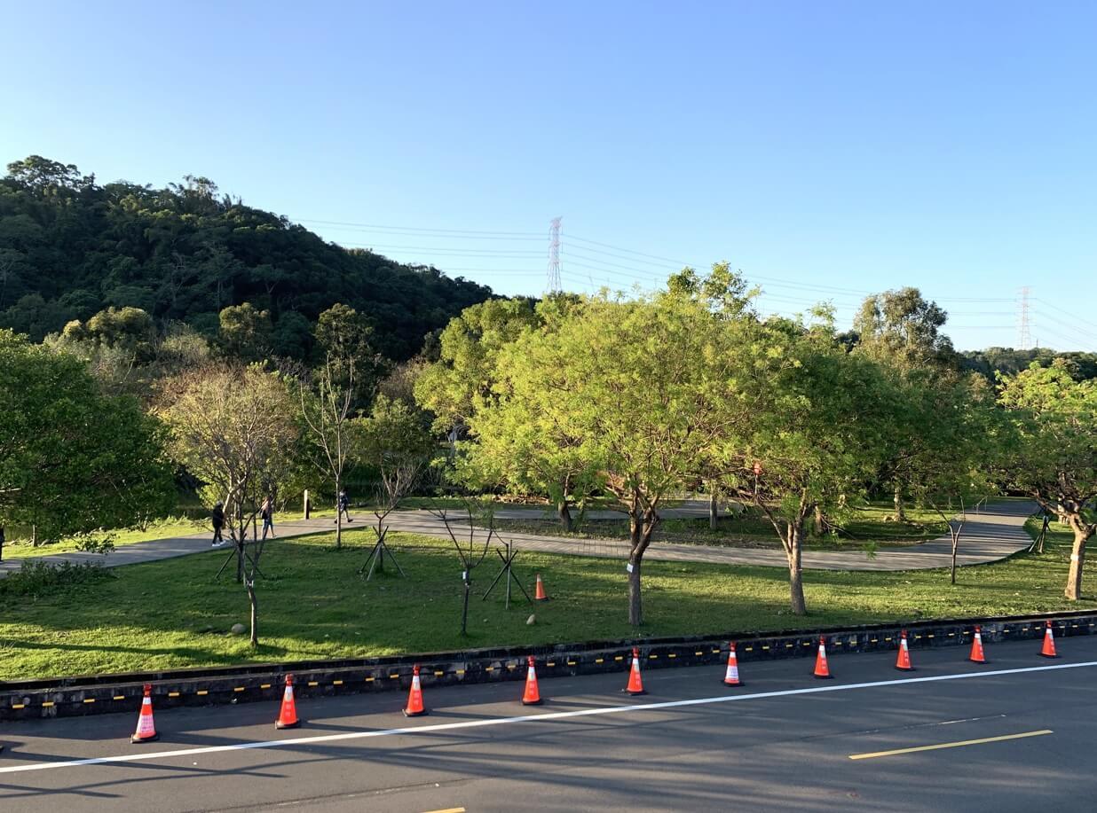 ↓這一面,可以環視「三坑自然生態公園」大草坪及生態池的繽紛風景。