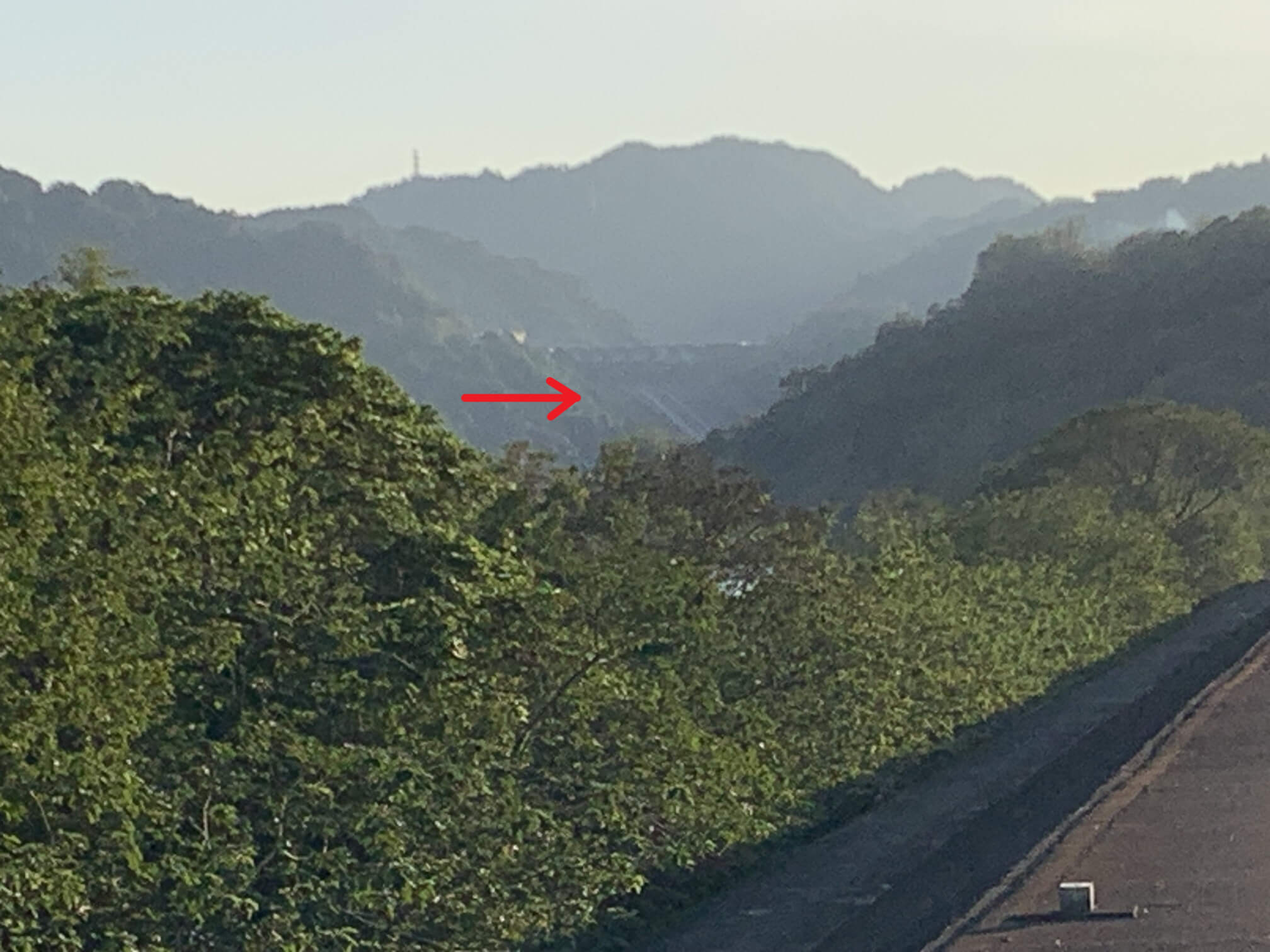 ↓轉過來,遠方隱約可見「大平紅橋」。