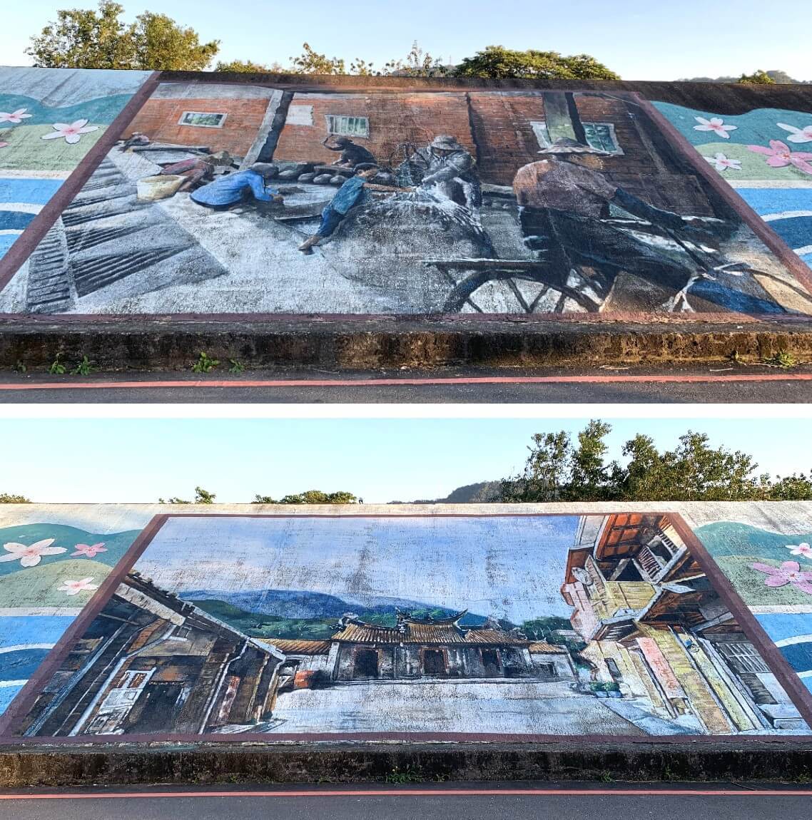 ↓這裡的河堤彩繪,是今天走過的「大平紅橋」。