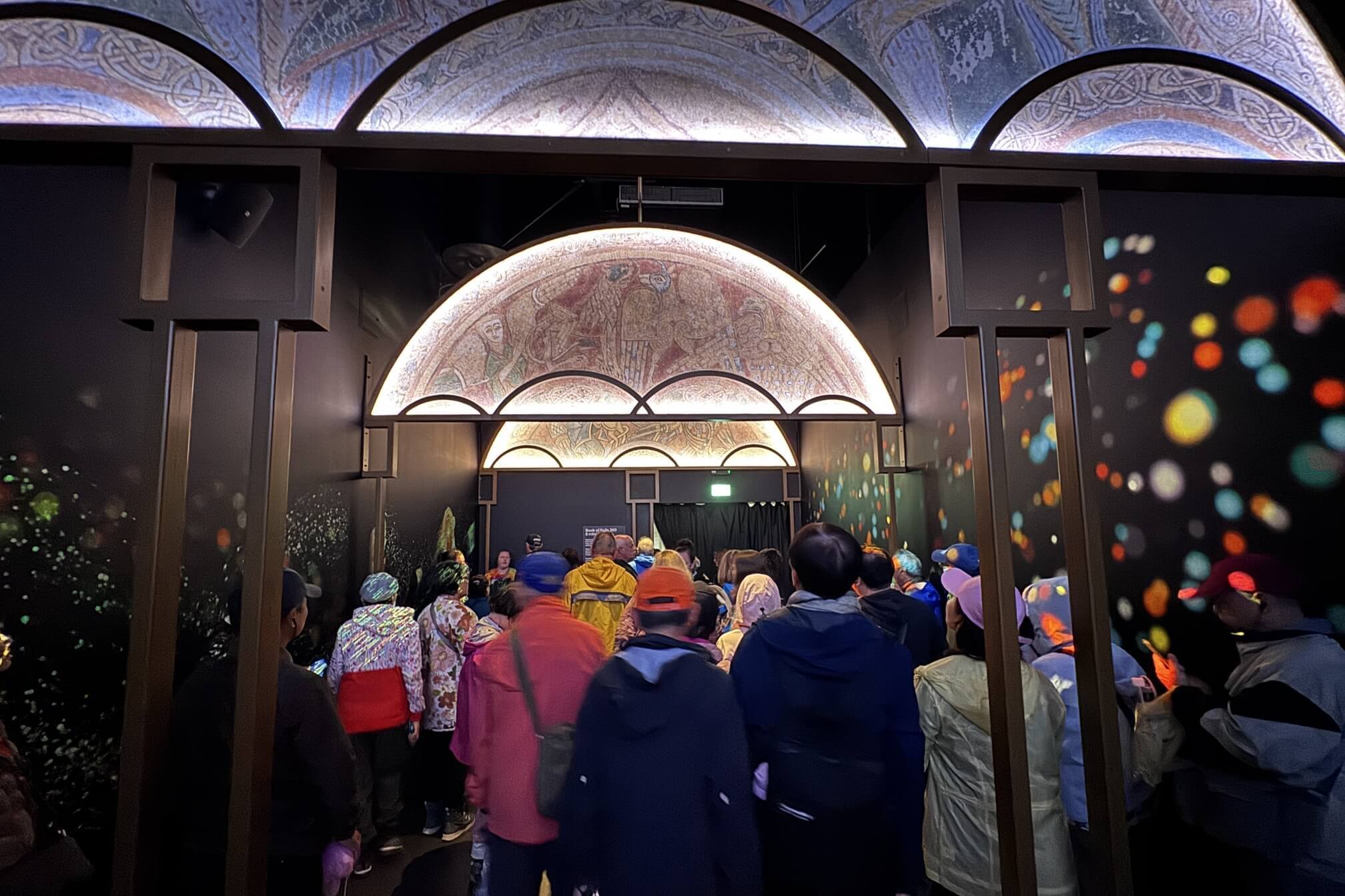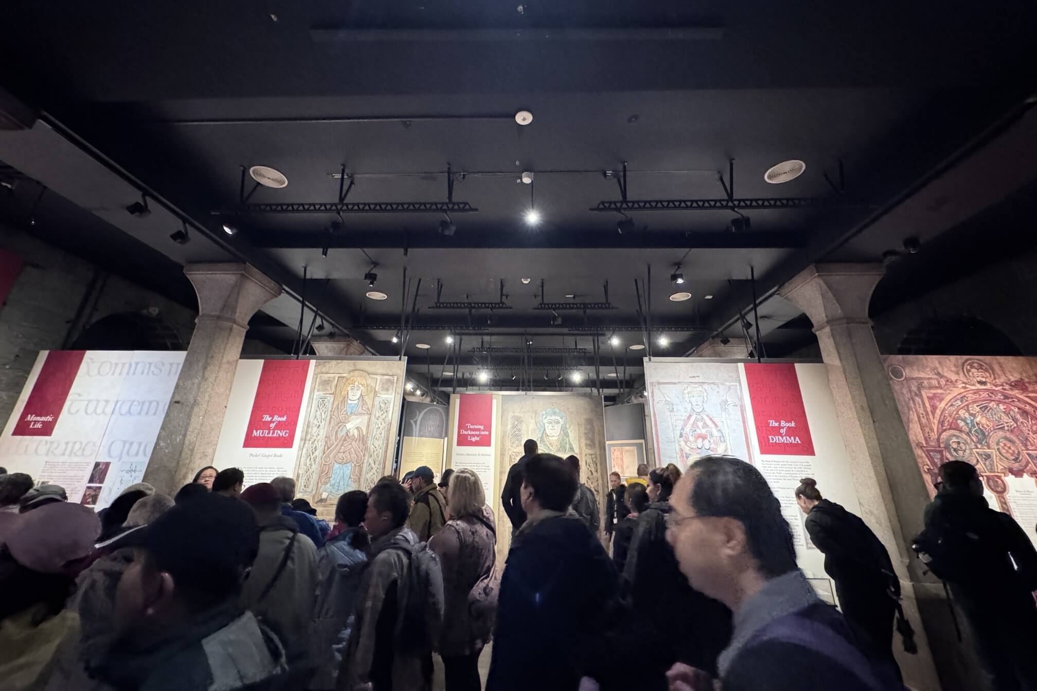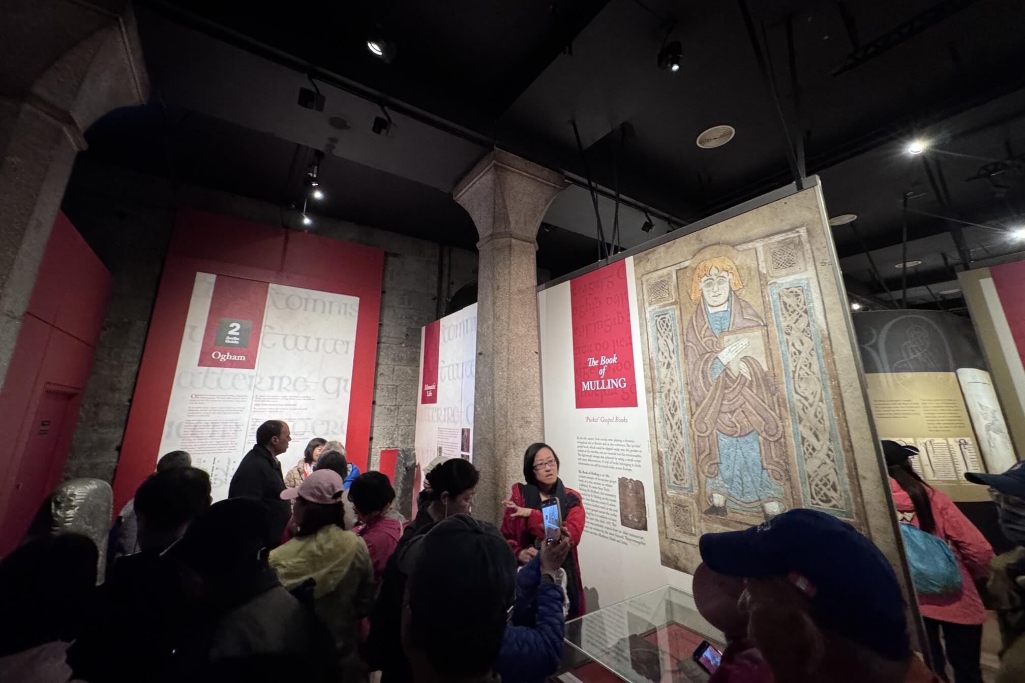 ↓這是《穆林之書The Book of Mulling》,是一本愛爾蘭袖珍福音書。我們在都柏林這兩天City Tour的導遊,沿路向大家做介紹。館藏許多著名的經書,實體書籍並未擺出,而以燈箱形式展示。
