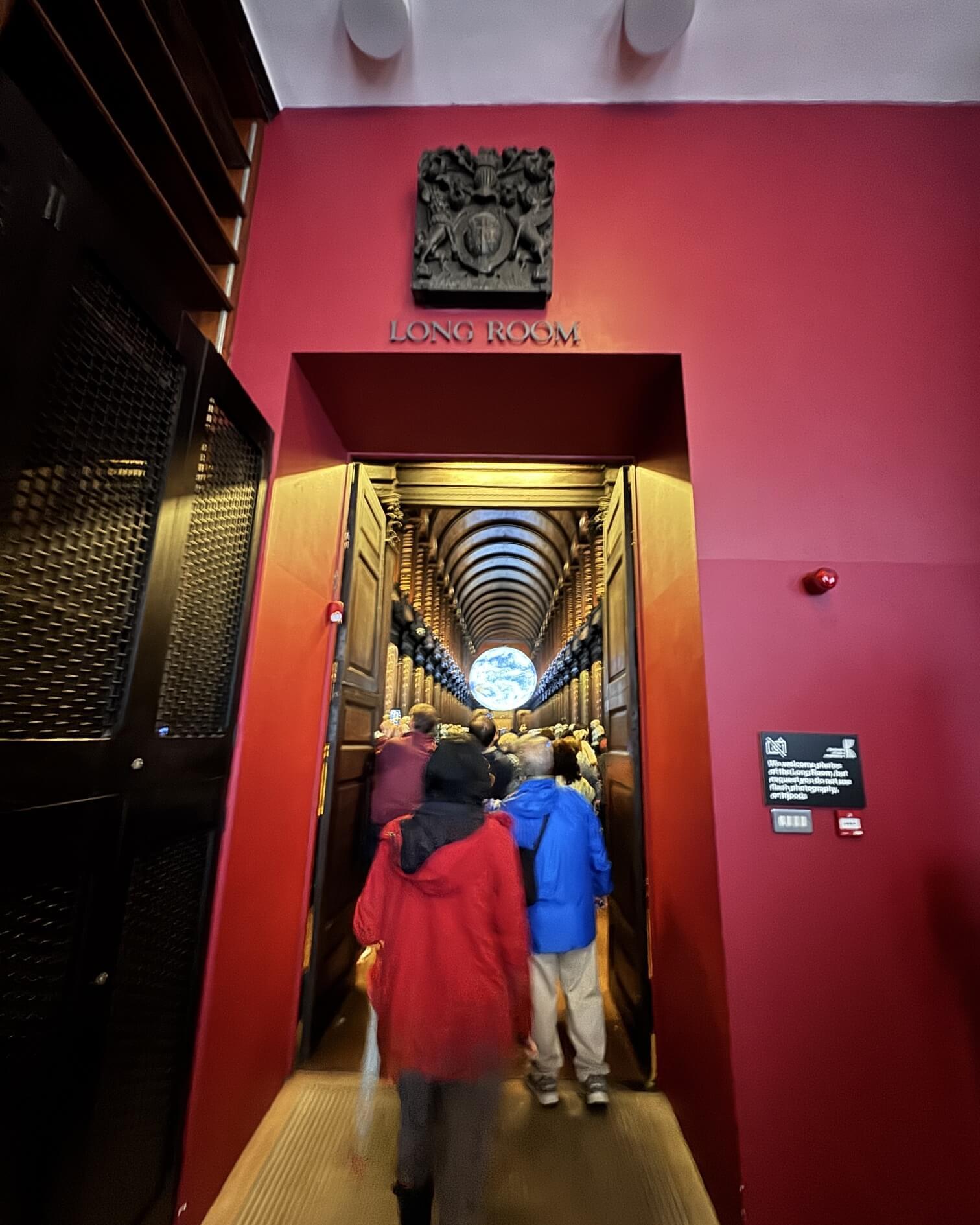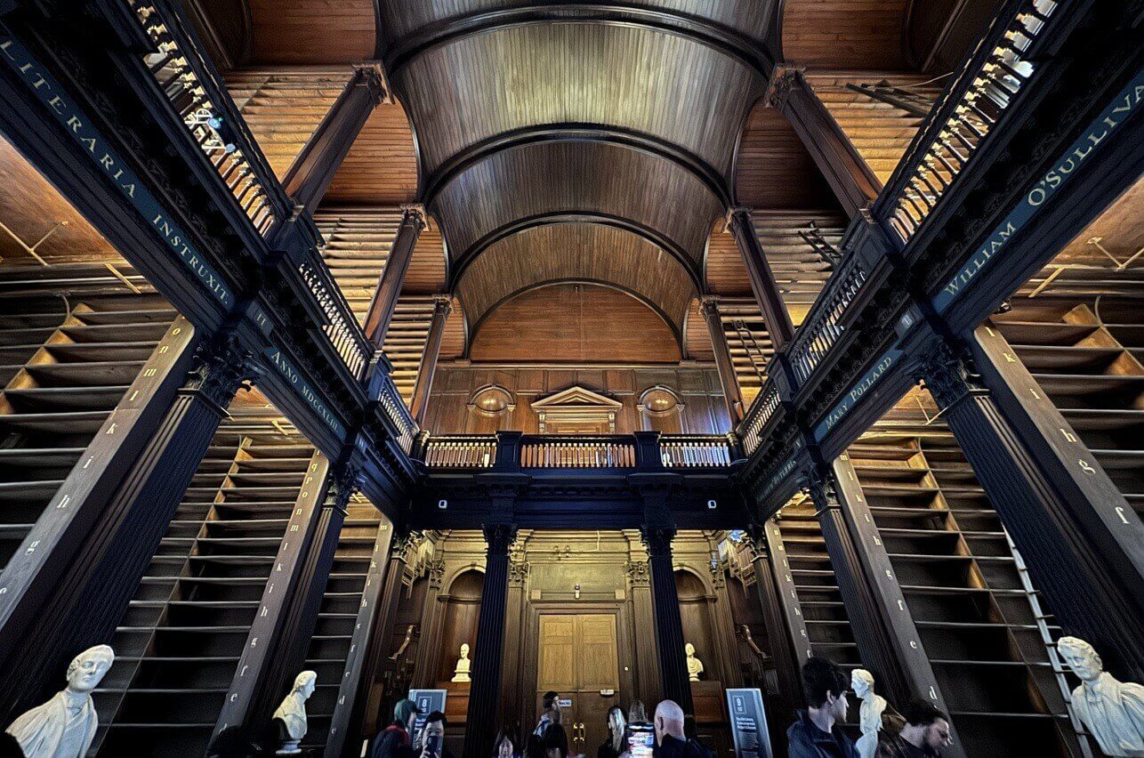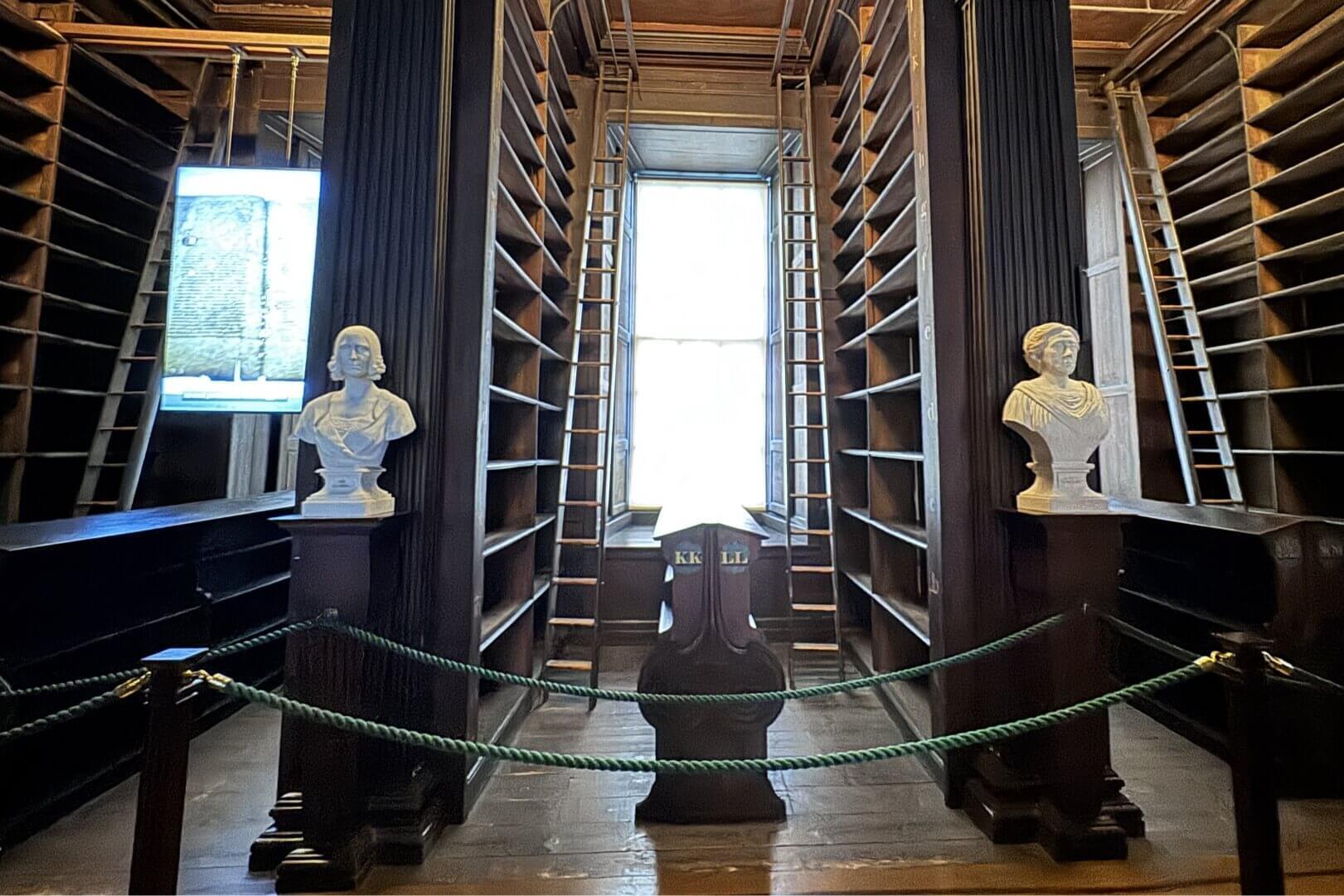 ↓Long Room長達65公尺,兩側空間是圖書架,走道兩邊則有幾十座的大理石半身雕像,整體建築令人驚艷,被喻為世界上最美的圖書館之一。