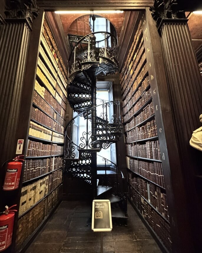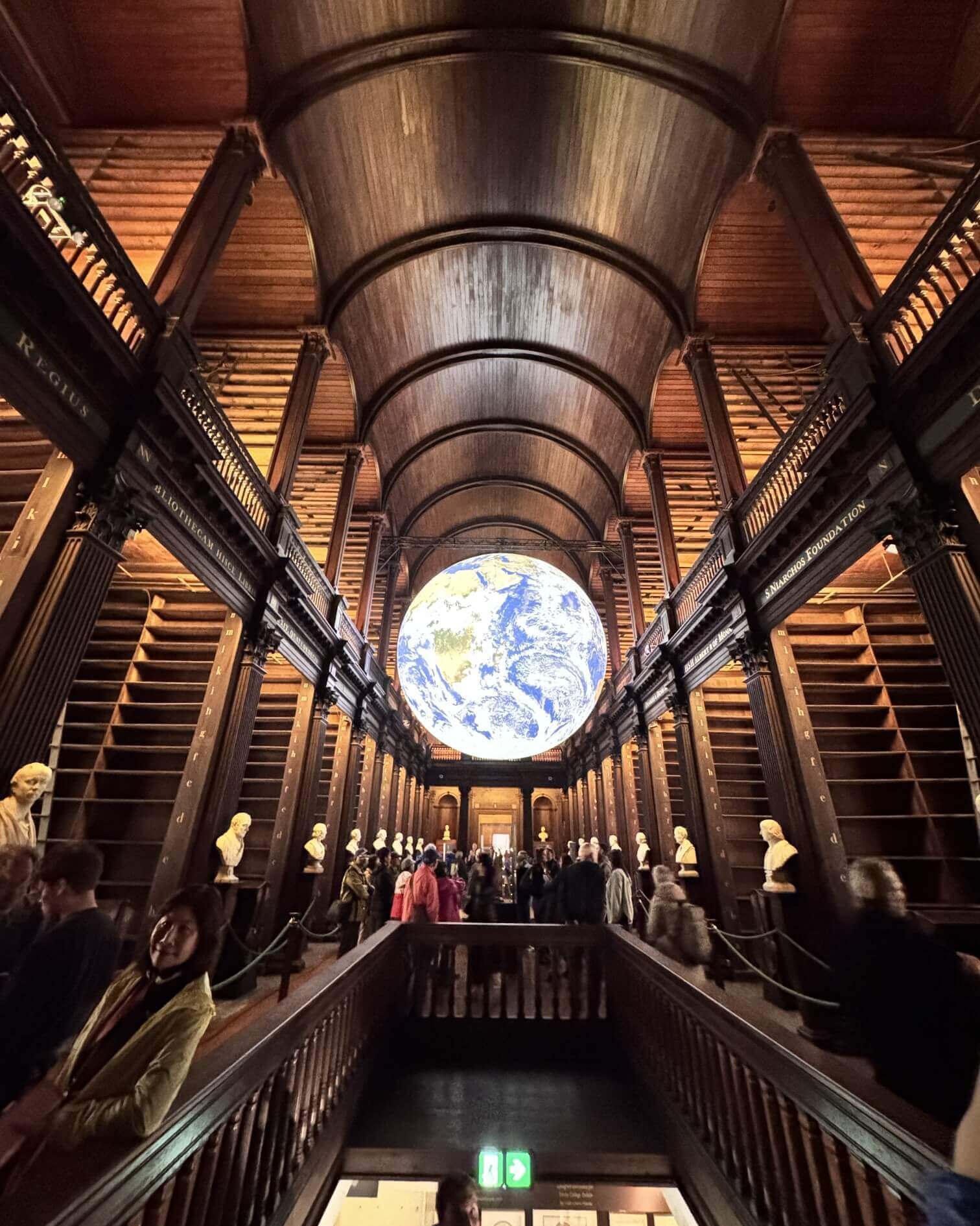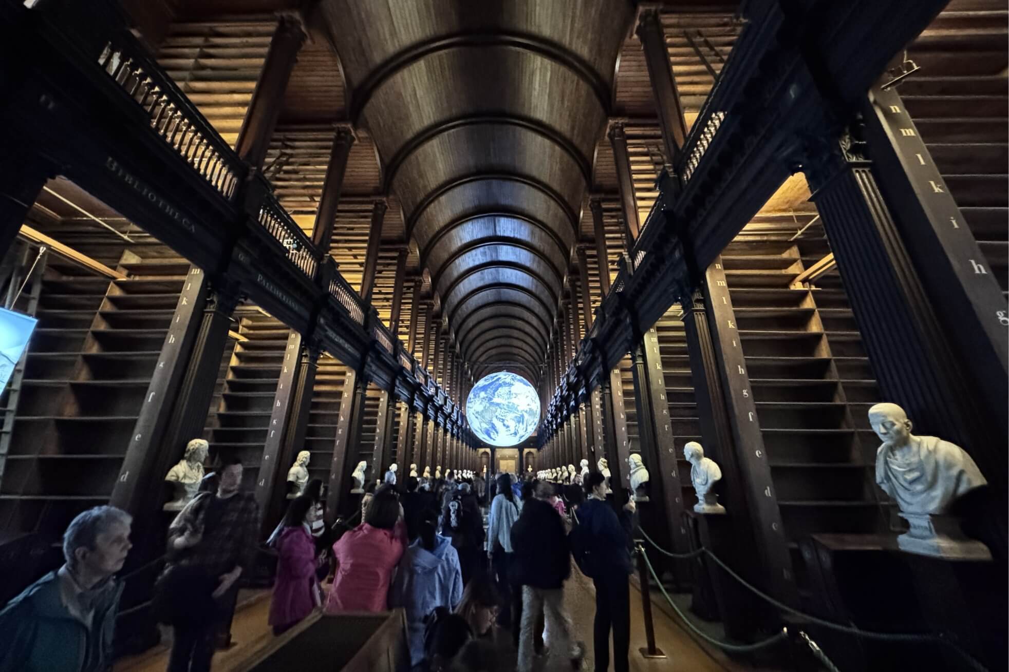 ↓Long Room長達65公尺,兩側空間是圖書架,走道兩邊則有幾十座的大理石半身雕像,整體建築令人驚艷,被喻為世界上最美的圖書館之一。