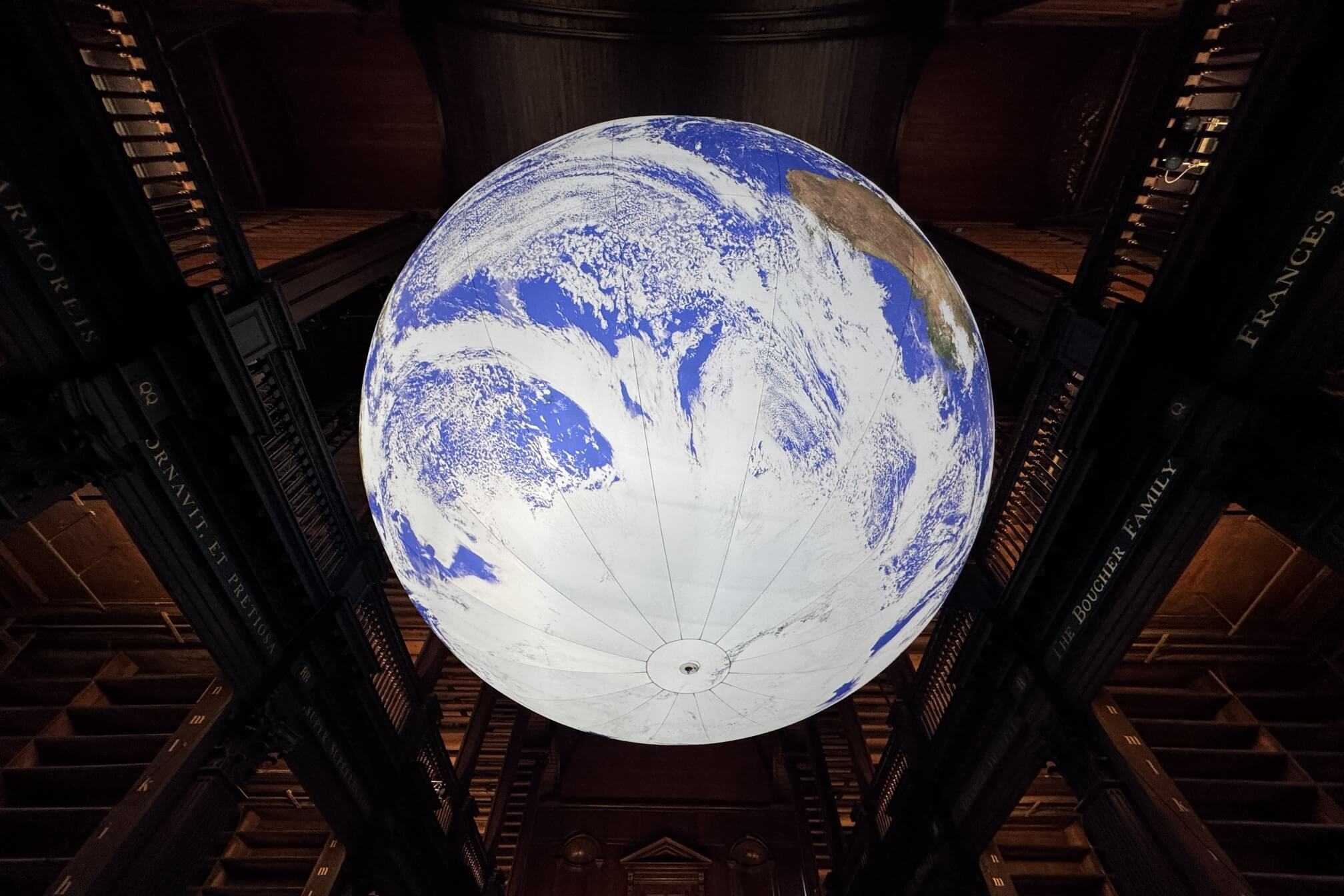 ↓這顆螢光地球儀,無任何支撐及繩索而懸空高掛,看不出破綻,還會緩慢地旋轉,真是神奇!