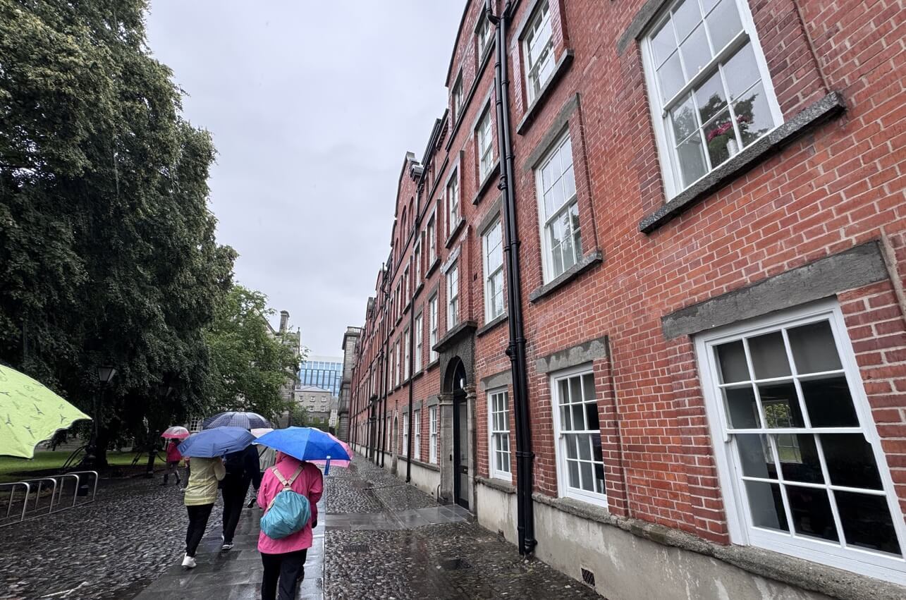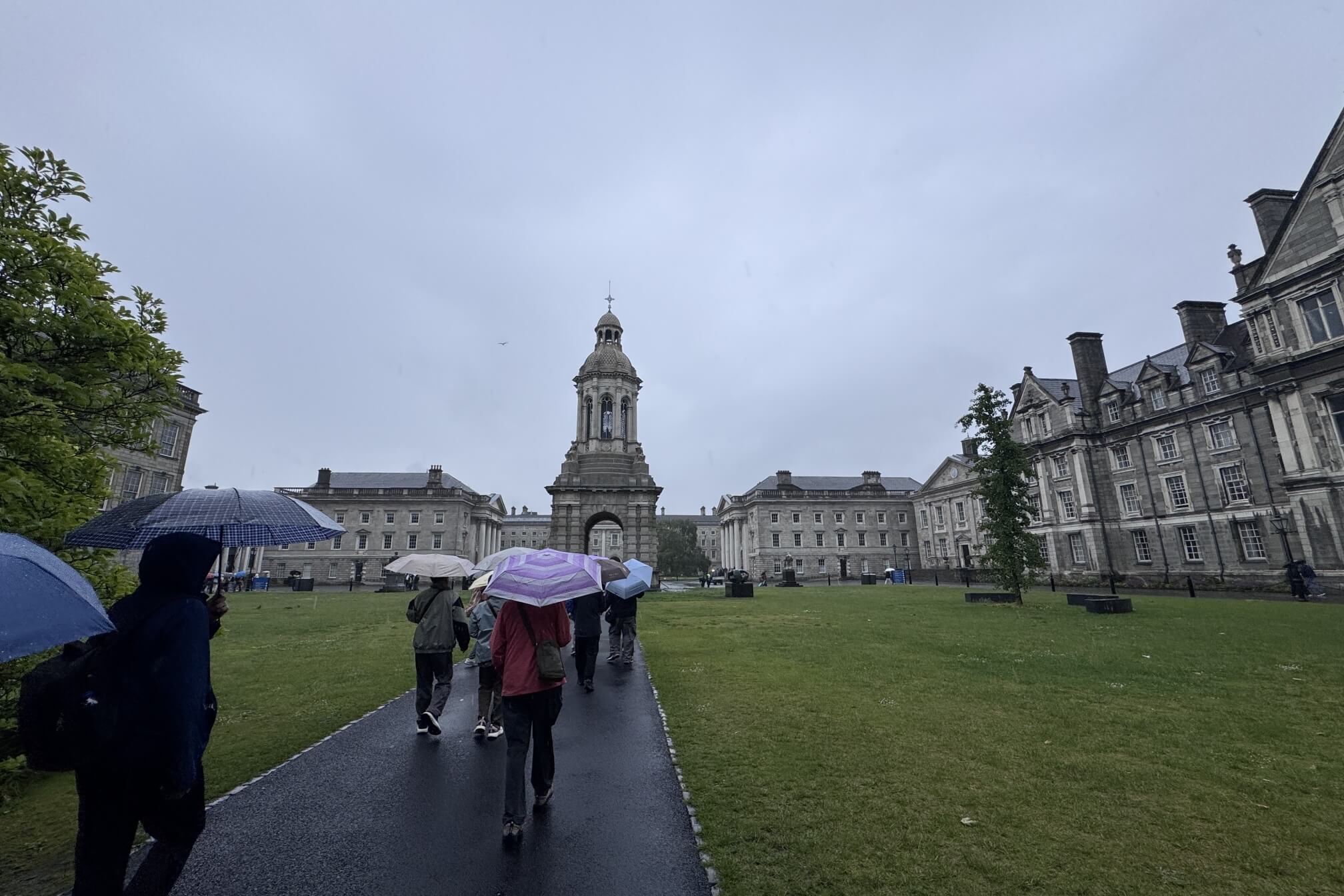 ↓早上一出門就下雨,今天的第一個行程是號稱『愛爾蘭之最』的「都柏林三一學院Trinity College Dublin」,創立於1592年,是愛爾蘭最古老、最著名的大學,被公認為愛爾蘭排名第一的大學。