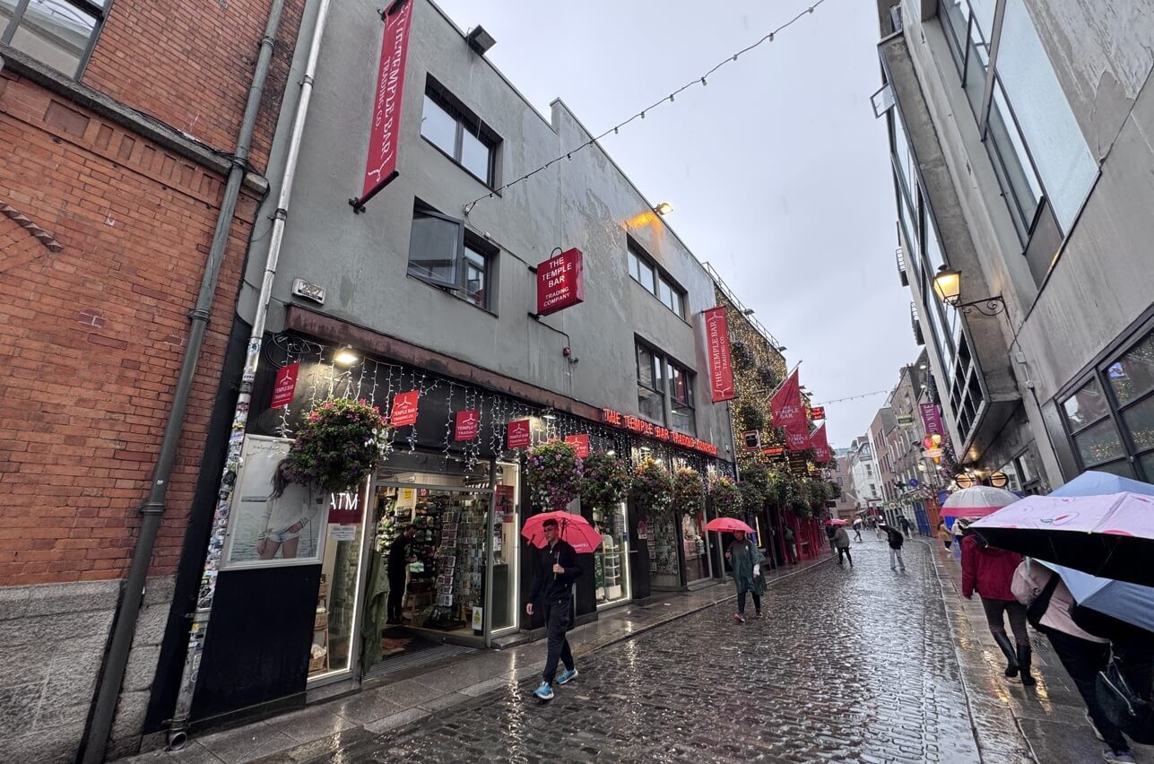 ↓這一條街,是都柏林市區著名的「坦普爾酒吧區The Temple Bar」,濃濃的中世紀街道格局,石板、鵝卵石道路,滿滿的懷舊風。