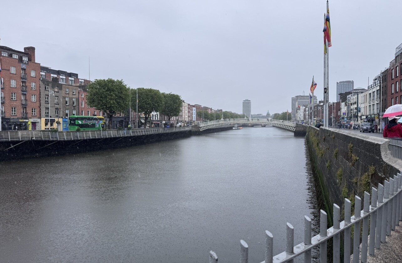 ↓細雨中的都柏林第一大河-利菲河(River Liffey)。
