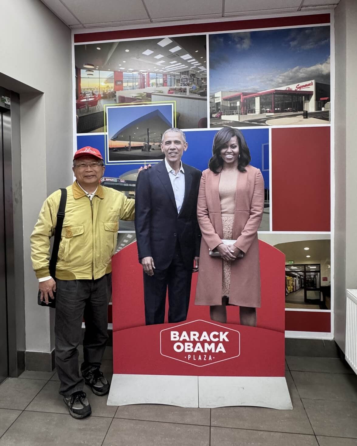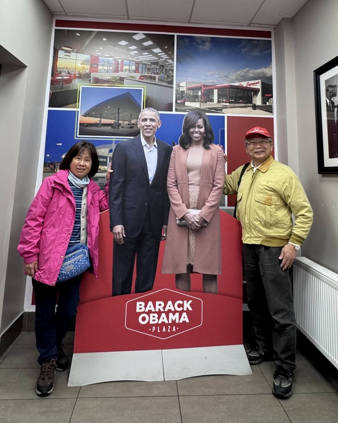 ↓旁邊還有歐巴馬夫妻的人形立牌,既然與歐巴馬也算是好朋友(哈!),就借個肩搭,合照一張。