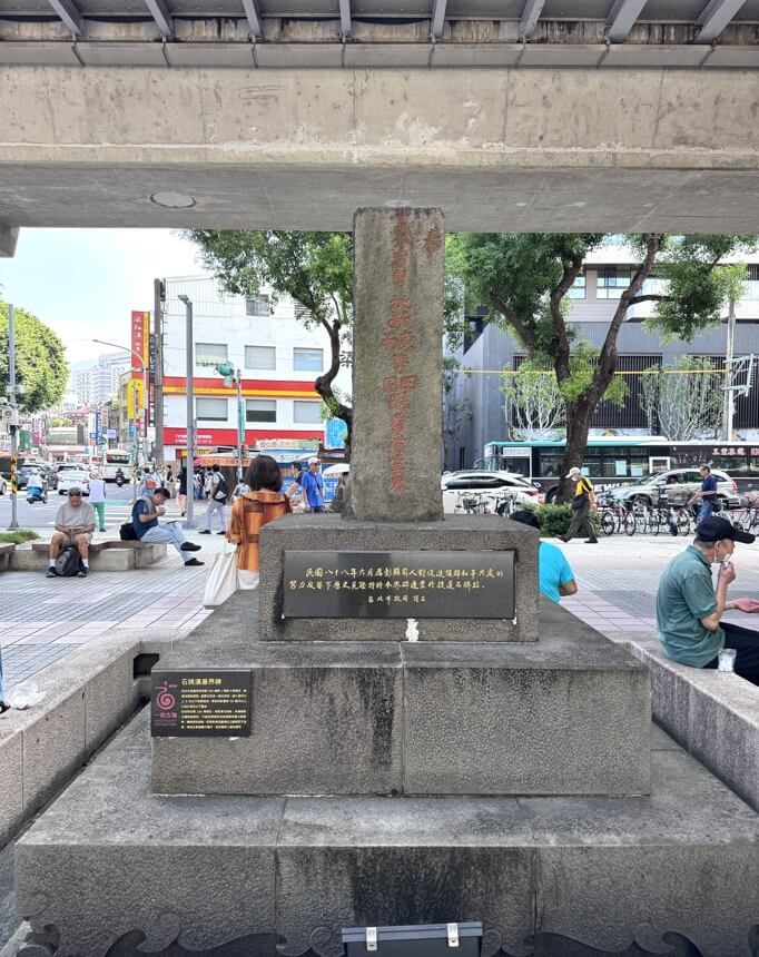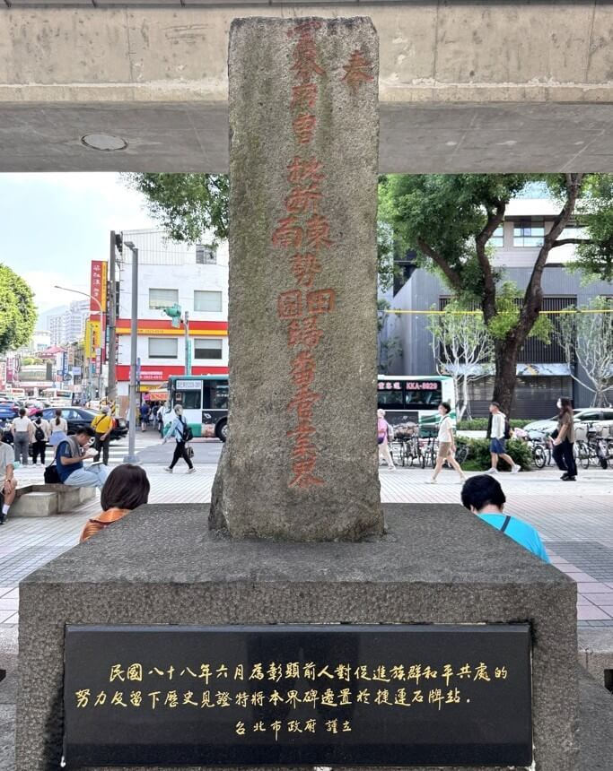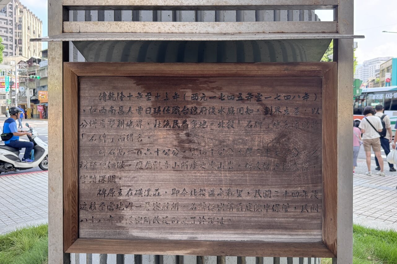 ↓石牌捷運站的出口廣場上,有一座特別的石碑。