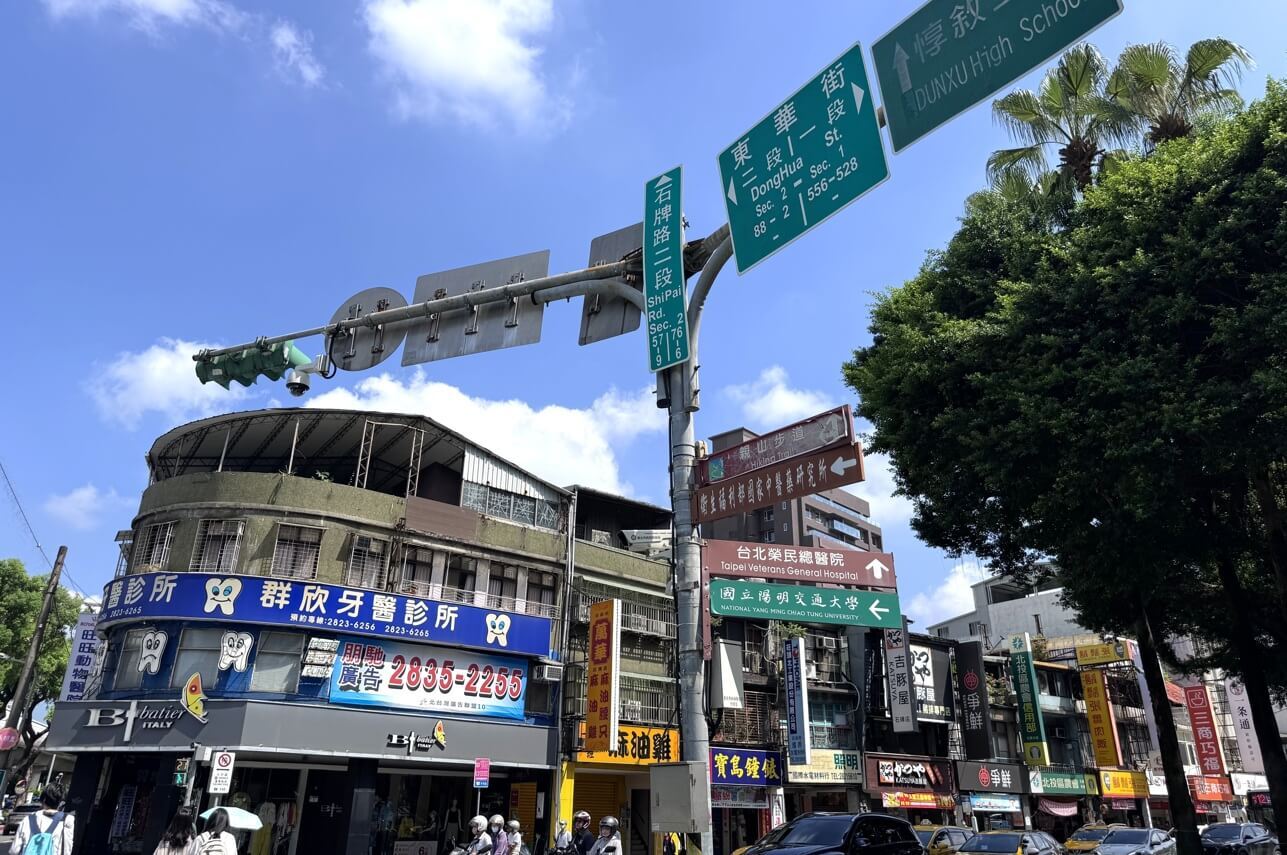 ↓石牌捷運站附近的街景,前方為石牌國中,是明星學校之一。