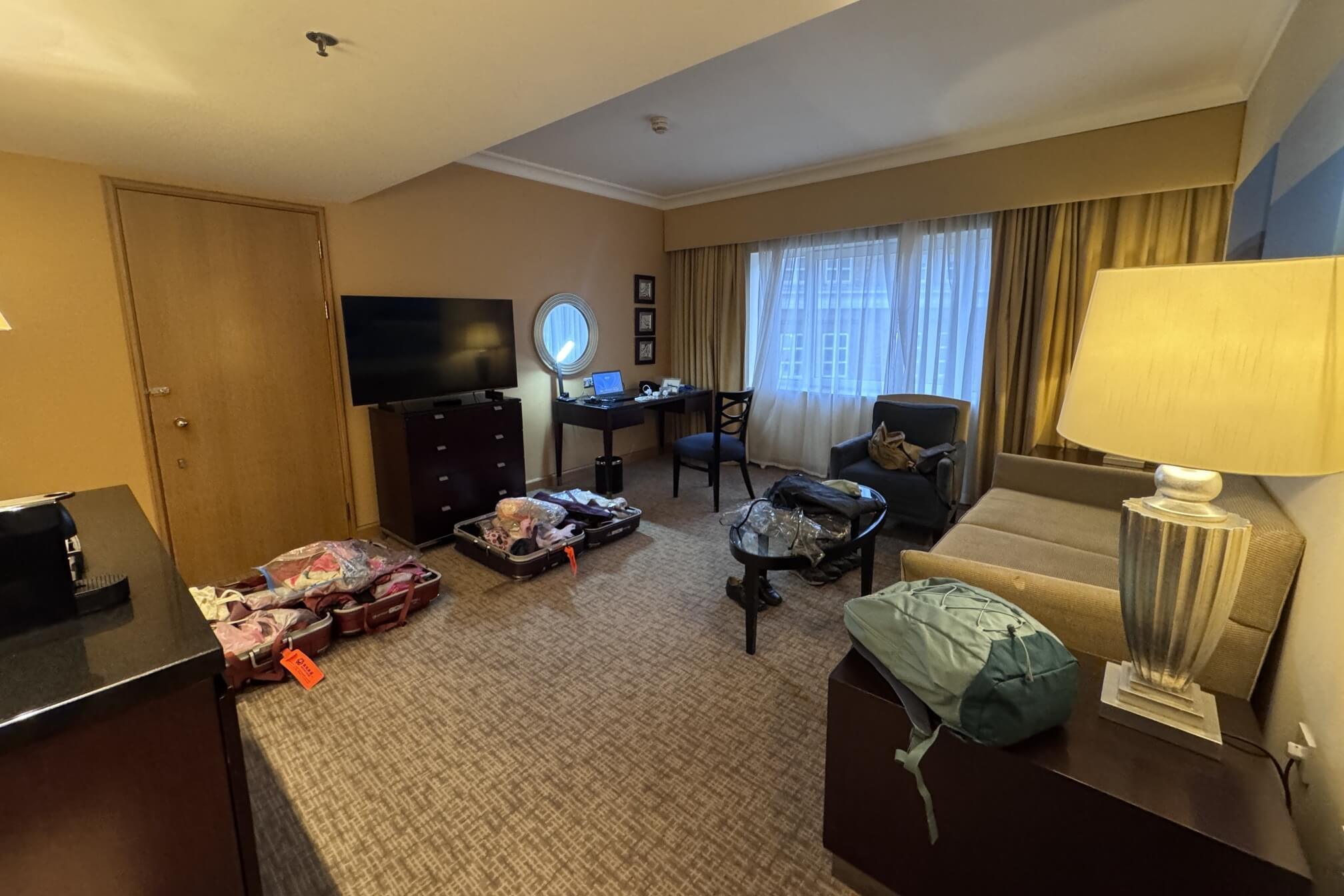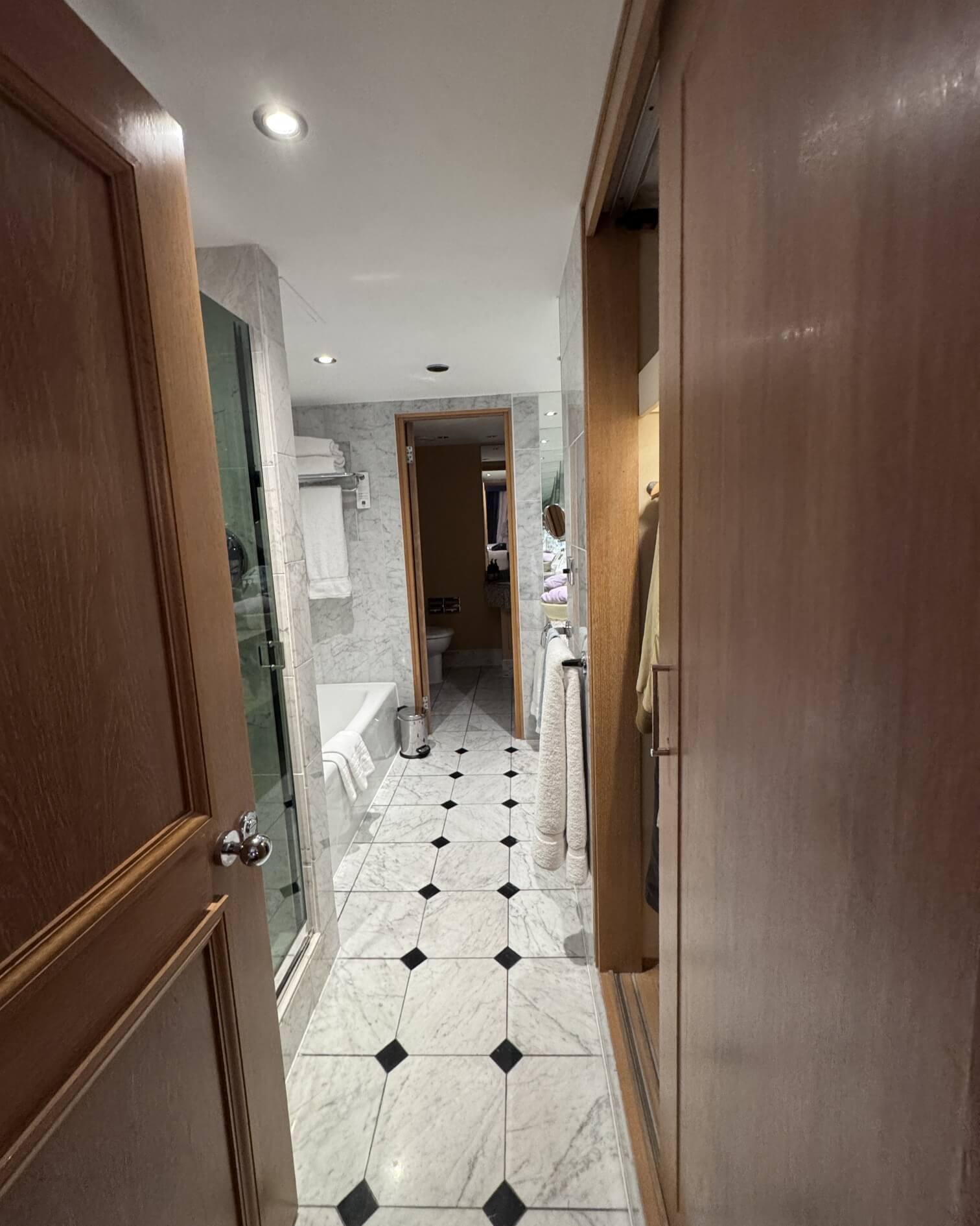 ↓開箱五星級飯店的房間,空間比前面所有住宿的飯店都還大,進門右邊有一間獨立的廁所。