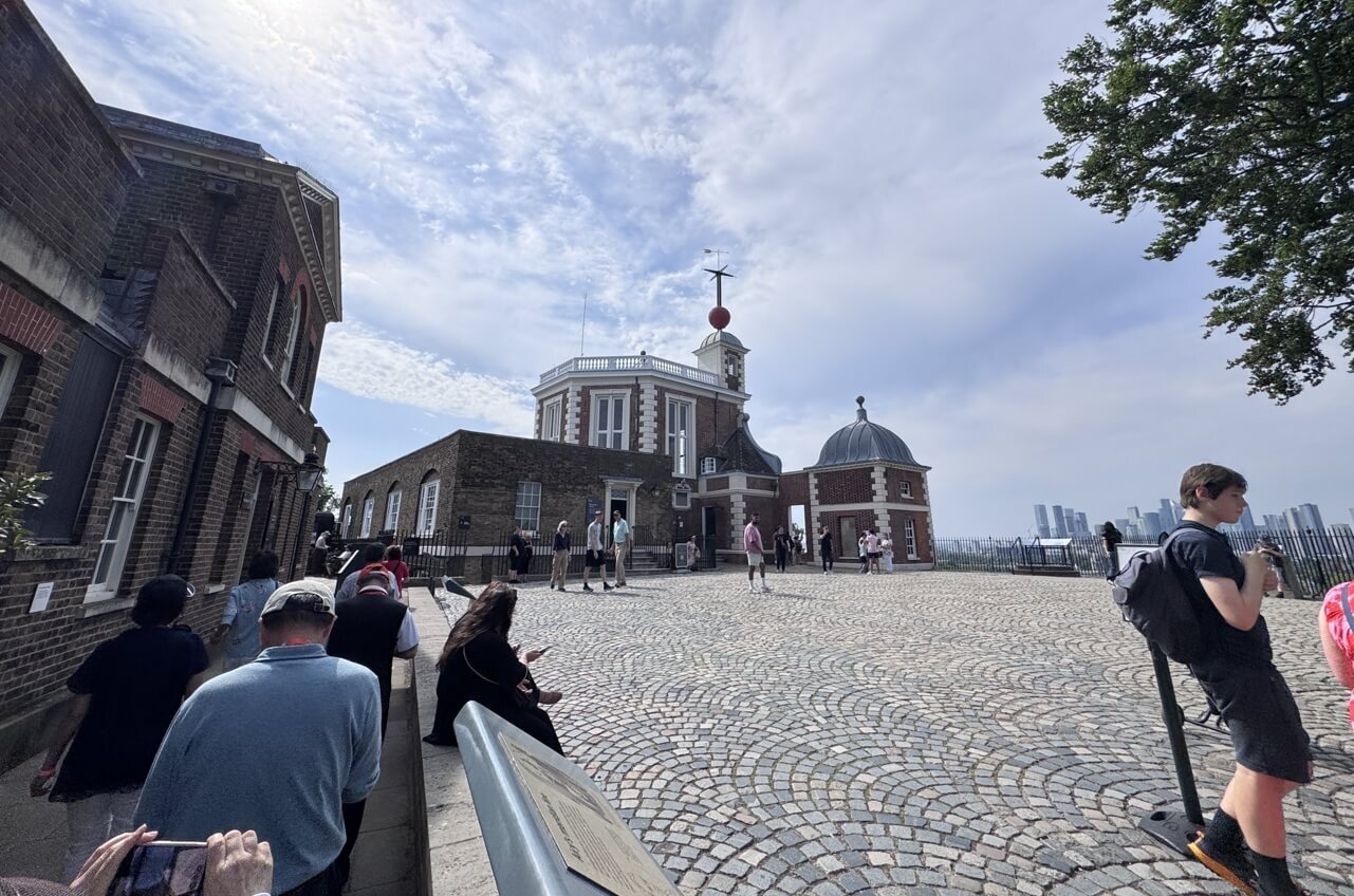 ↓過去10天的氣溫都在20度上下,都穿秋冬的衣服,一來到倫敦,便覺得有點熱,氣溫28~29度,夏天的衣服要拿出來穿了。氣象報告說未來幾天都是高溫的好天氣,顛覆了對倫敦陰雨、低溫(霧都)的刻板印象。準備進入天文台內了。