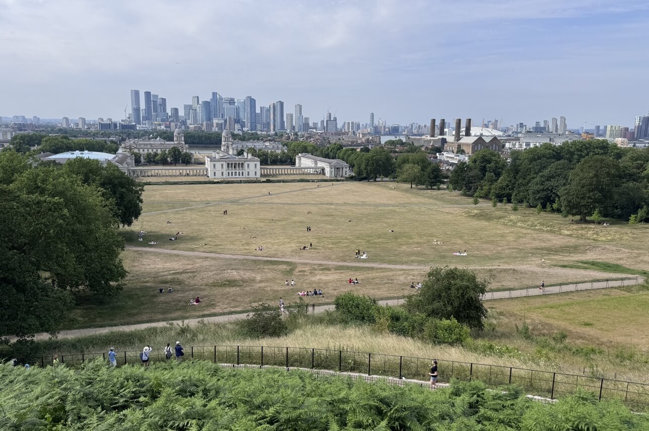 ↓皇家天文台座落於一座小山上,從子午線廣場的觀景台望出去,格林威治古典小鎮的風景一覽無遺,「格林威治地區」已被聯合國教科文組織(UNESCO)登錄為【世界遺產】。看出去的風景,據說是電影「雷神索爾2」裡面索爾大戰的場景,雷神索爾迷可以對照一下。