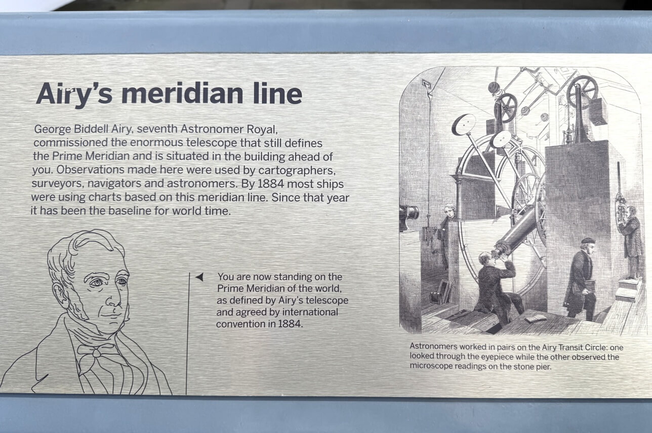 ↓皇家天文學家George Biddell Airy以一台巨大的望遠鏡,定義了本初子午線(稱為Airy’s Prime Meridian Line)。到1884年,在美國華盛頓召開的國際子午線會議(International Meridian Conference)中決議,通過格林威治的子午線為世界的標準本初子午線,格林威治標準時間GMT成為全球統一的時間標準基礎。