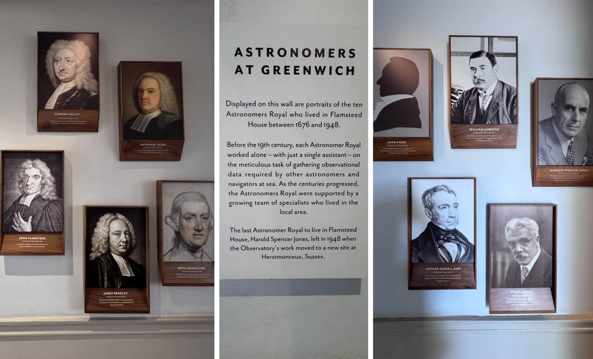 ↓皇家天文台自1998年起,已不再做為天文觀測設施使用,而轉型為博物館,展示各種天文儀器及時鐘。英國當年建置皇家天文台後,國王也建立了皇家天文學家的職位,以擔任天文台的台長,這裡有歷來10位皇家天文學家的介紹。