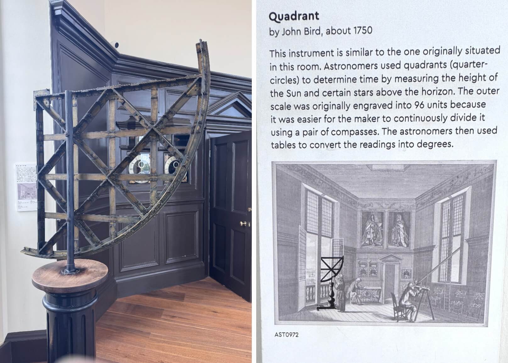 ↓展覽室內還有一座『四分之一圓』儀器,1750年,天文學家John Bird用它來測量太陽和地平線上某些恆星的高度,以確認時間。