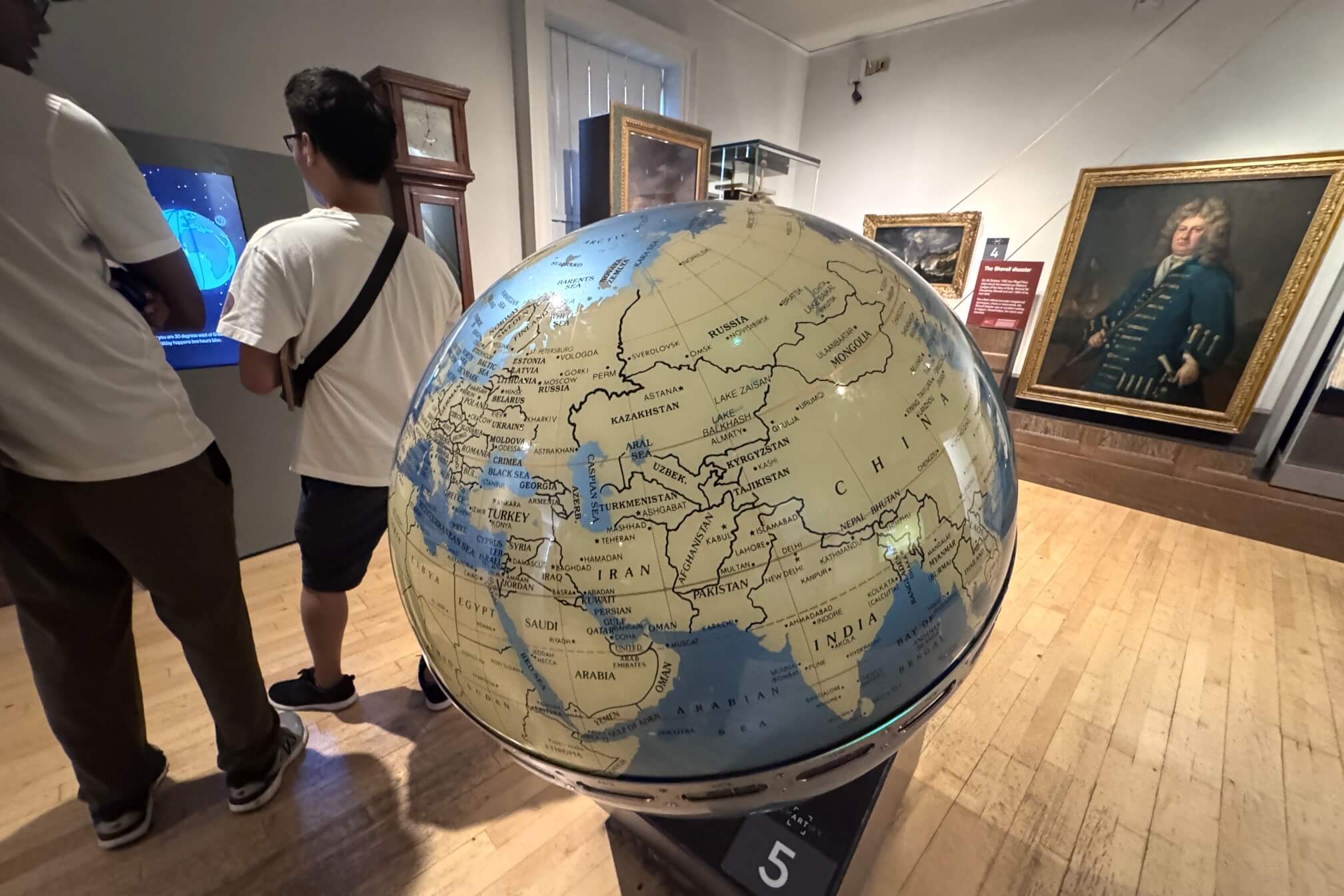 ↓這是地球儀和觀察行星的模型。對了,進入格林威治皇家天文台前,記得先去領取導覽機,有提供各種語言的導覽服務。可惜我們團體沒有全員一起入場,領隊並沒有帶我們領取導覽機,可能是入場時一陣驚慌,忘了要領取。