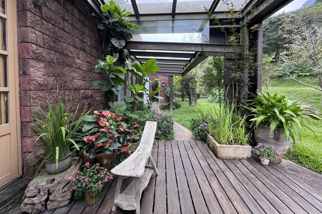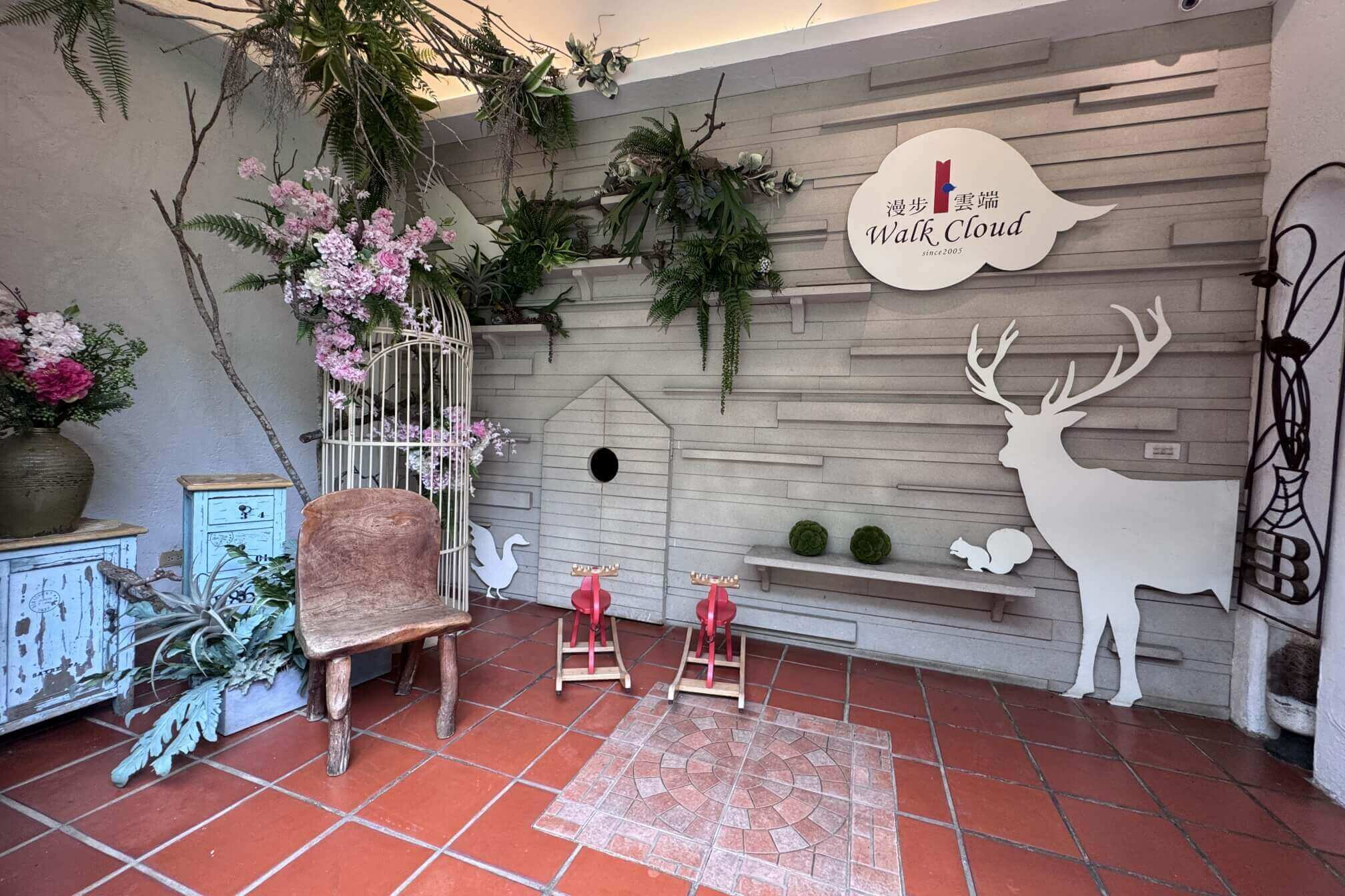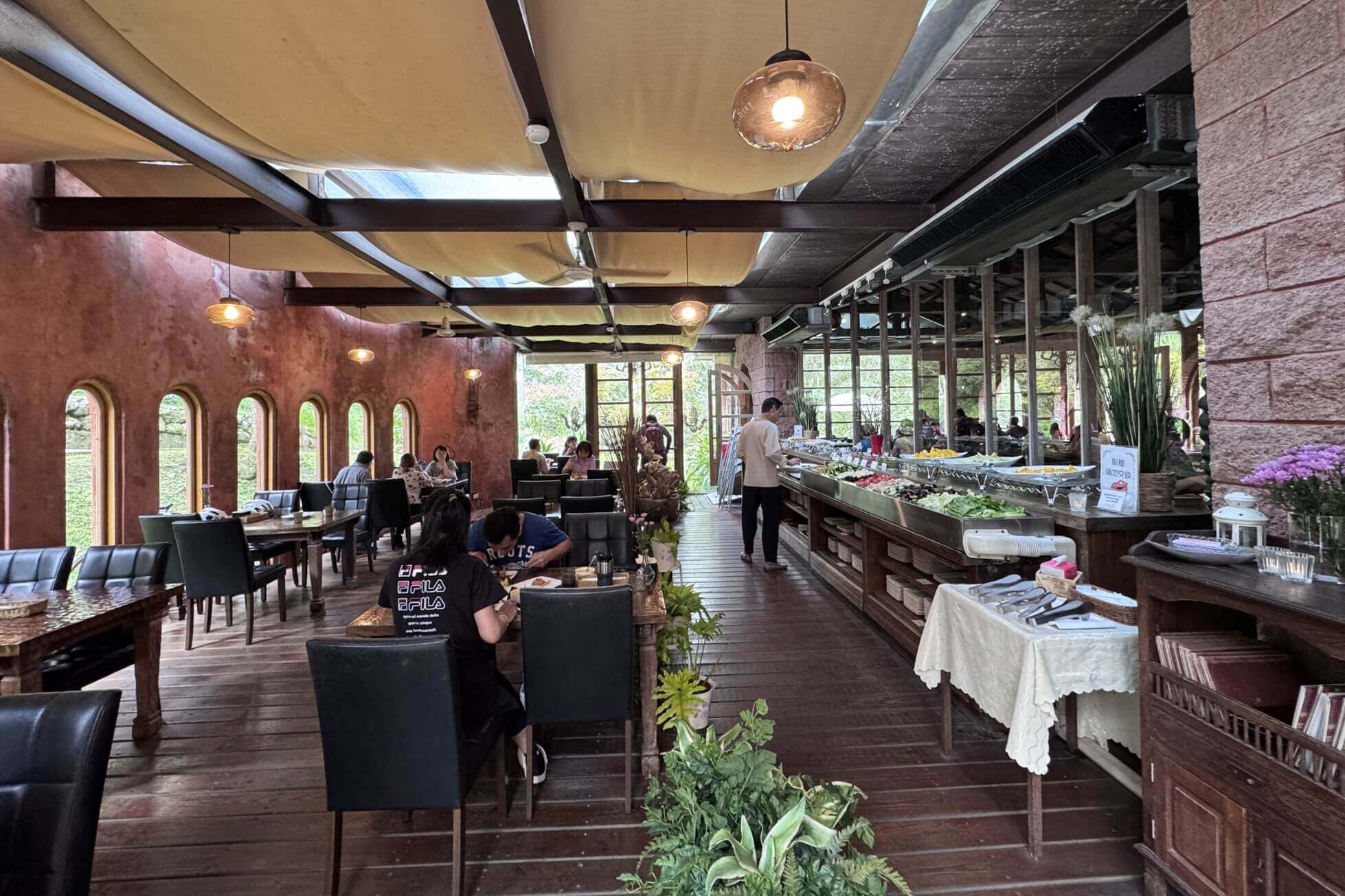 ↓我們開車從國道1號的三義交流道下,去鯉魚潭前,要先到位於三義鄉山區的一處餐廳「漫步雲端森林廚房」,我們來過好幾次了,這是疫情之後第一次回訪。餐廳提供免費的停車場,停好車後走進園區。