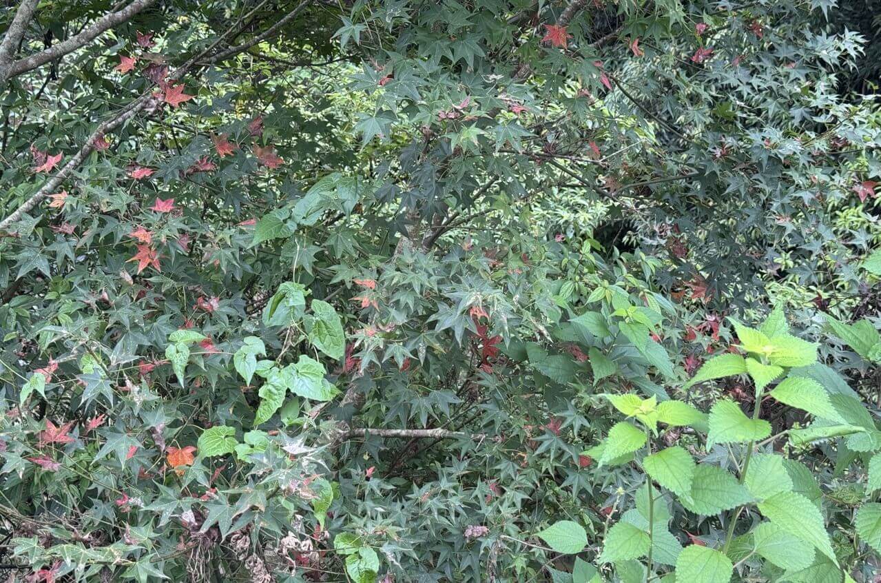 ↓才八月,怎麼就有楓葉轉紅了呢?園區內除了秋冬有楓紅,冬春交替之際常有雲海,春天還有櫻花、桃花可賞,四、五月則有桐花,真是個除了享受美食外,還可享景的好地方。