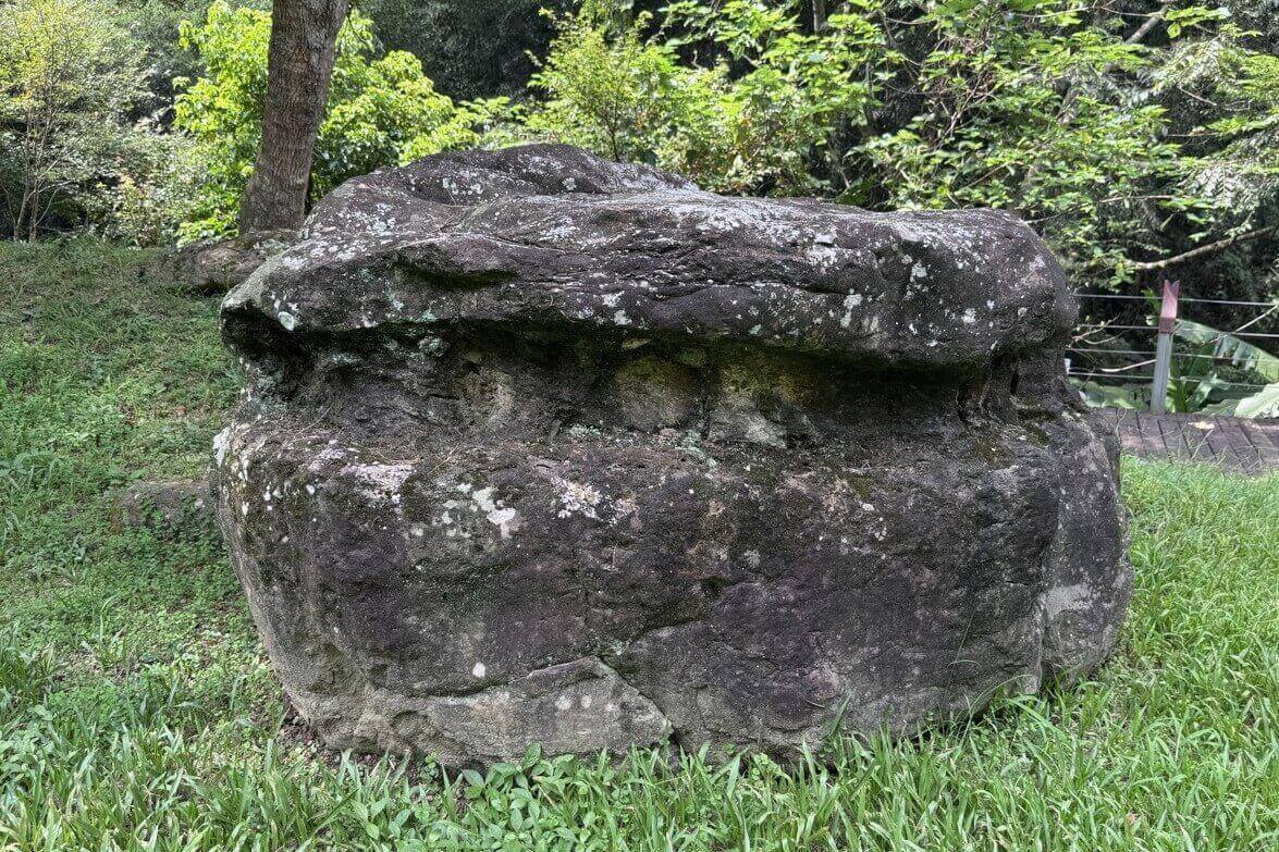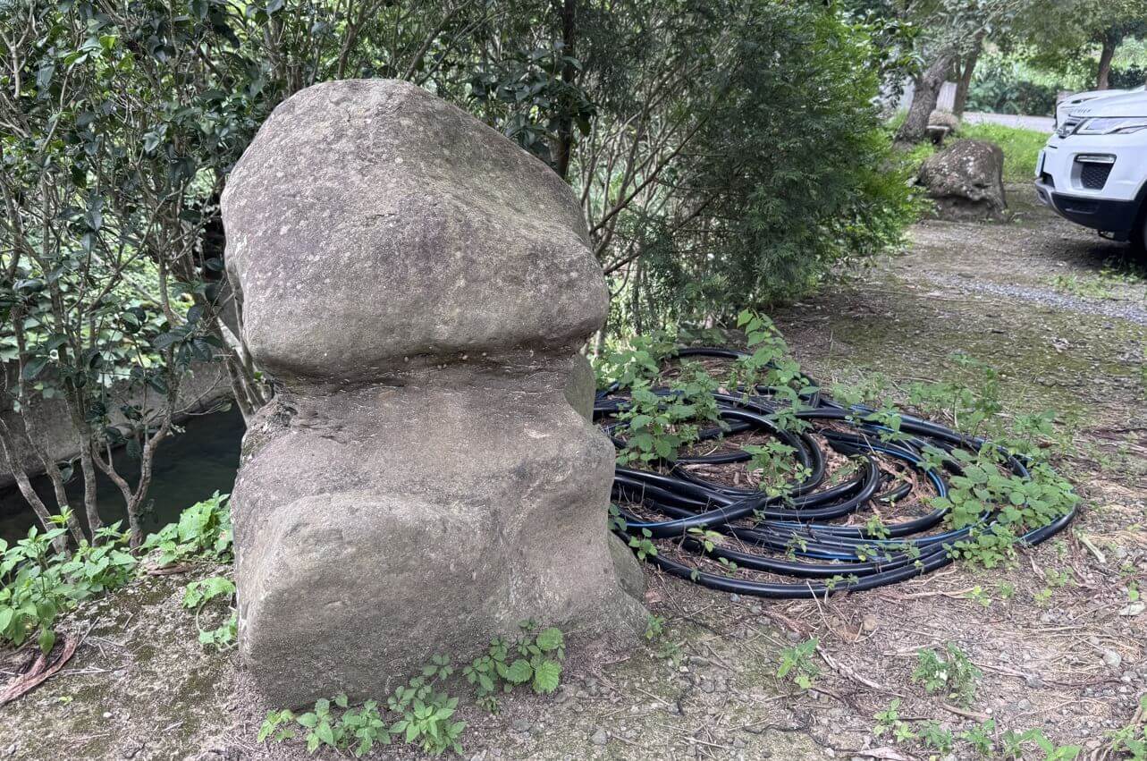 ↓在溪邊看到了幾顆大石頭,都有凹陷的圈圈,看起來像是河岸邊綁船的纜樁(繫船石),難道這條小溪過去曾有行船?